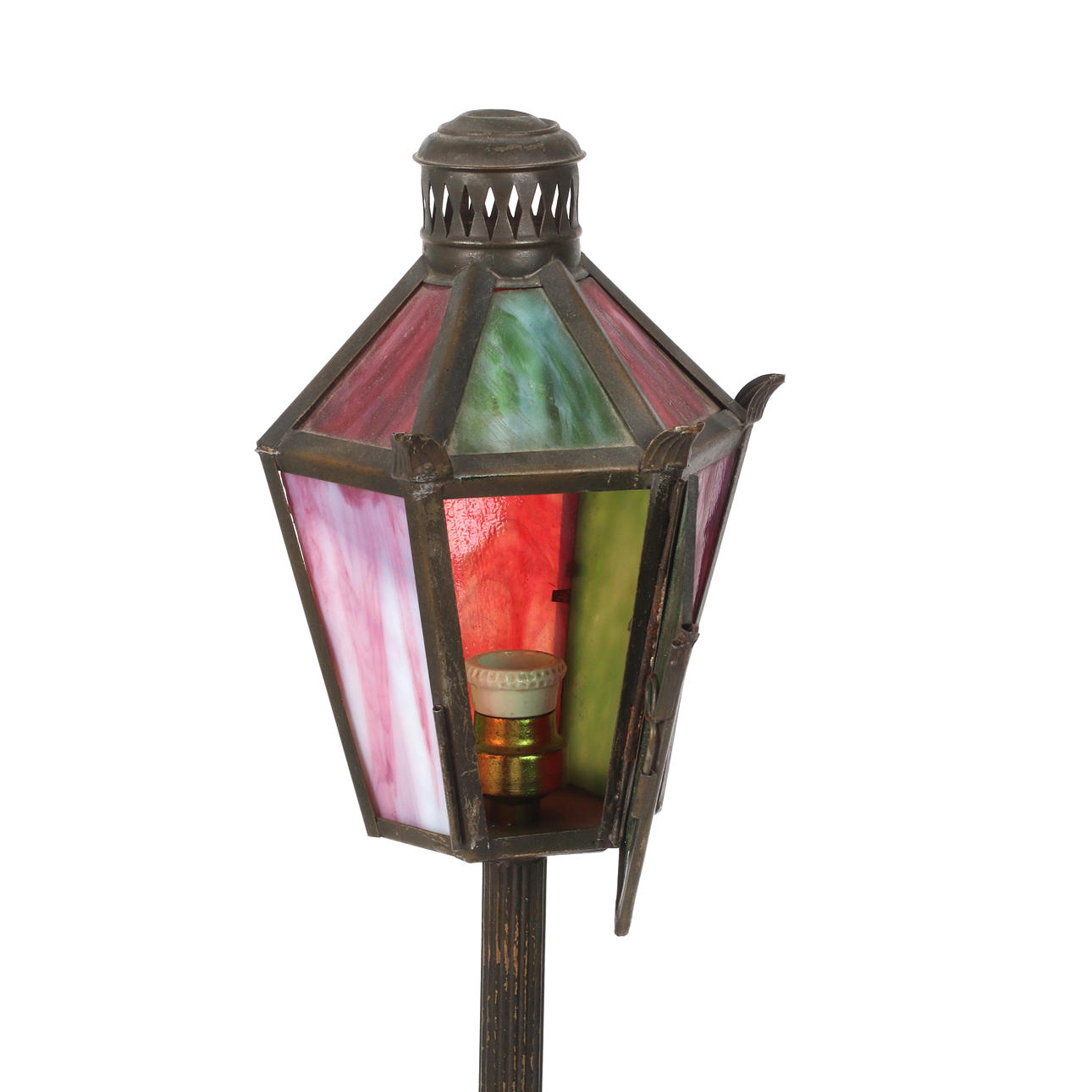 Use- and age-related wear. Two prongs for the lampshade are missing. Not function tested.