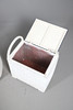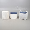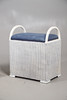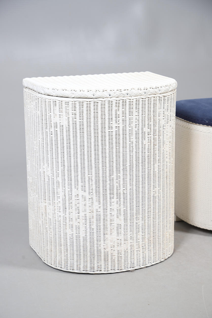 To include a Lloyd loom Lusty basket, as well as Lloyd Loom basket with an upholstered seat. Together with a similar basket. Size of tallest, 50cm (h) x 41cm x 30cm. (3).