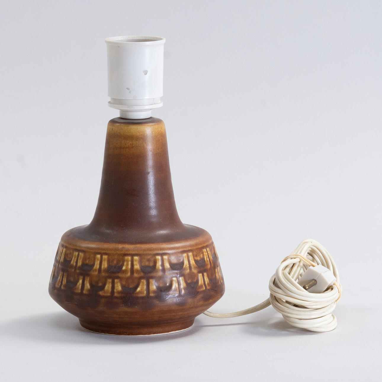 Small stoneware lamp with earth-toned glaze. Denmark.