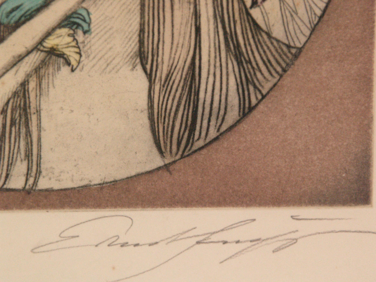 signed in pencil below and numbered '159/199', plate approx. 25.5 x 25.5 cm, framed with mat under glass