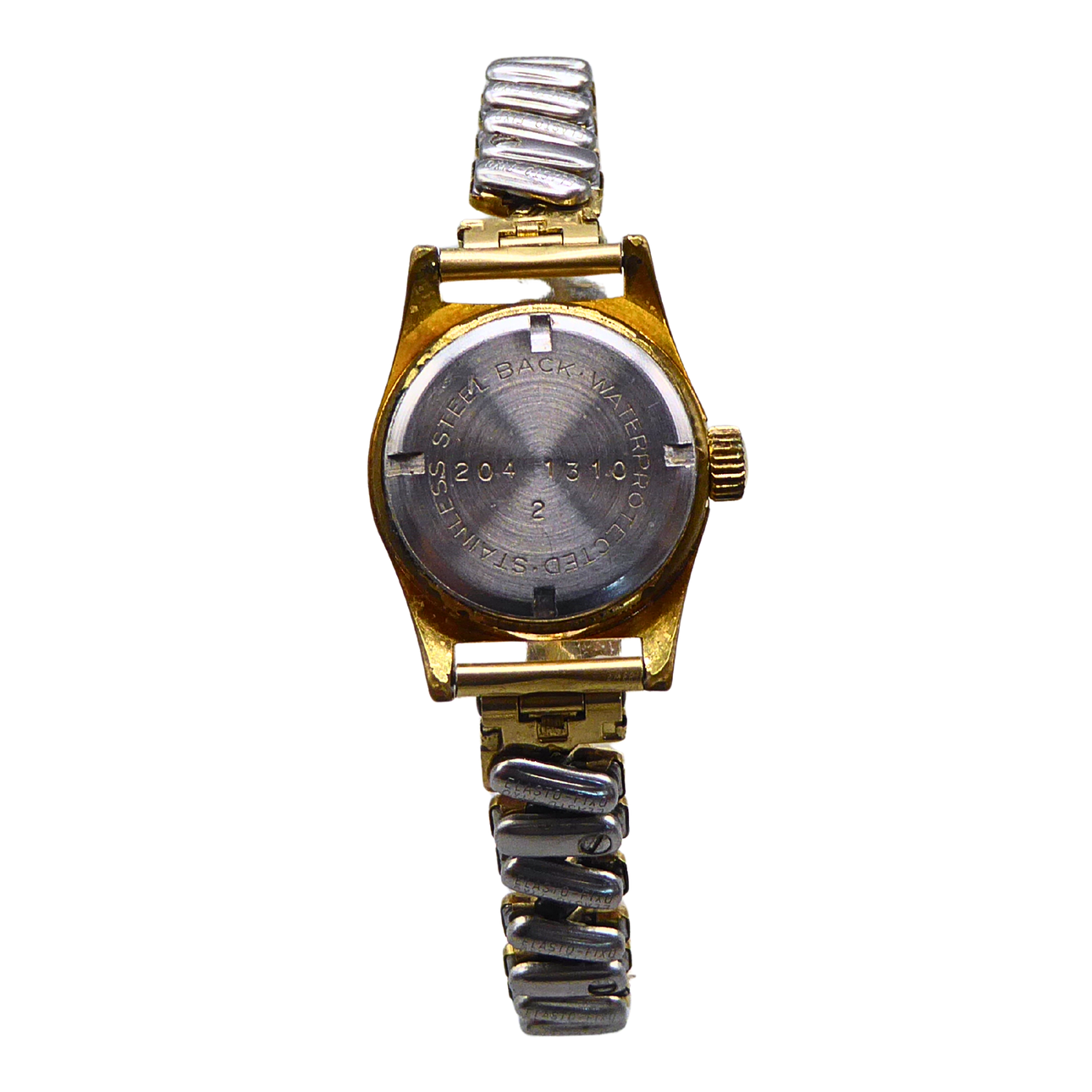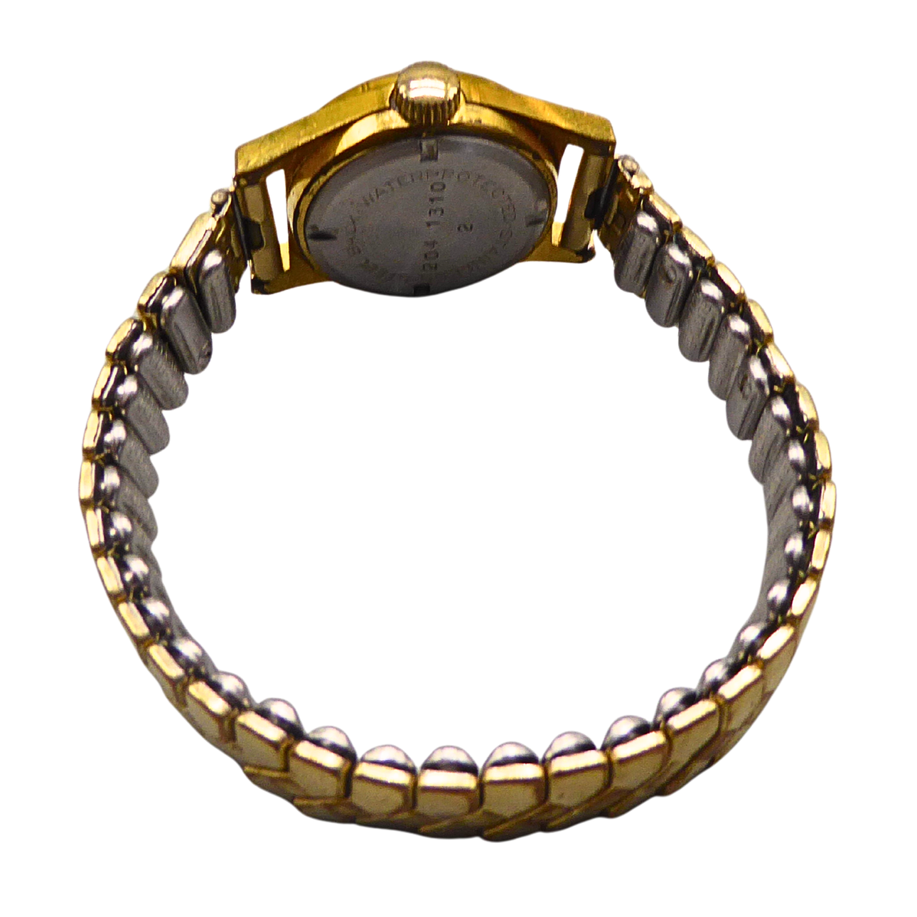 BWC ladies' wristwatch. The bracelet is flexible and the watch is water-resistant. The case back is made of stainless steel.