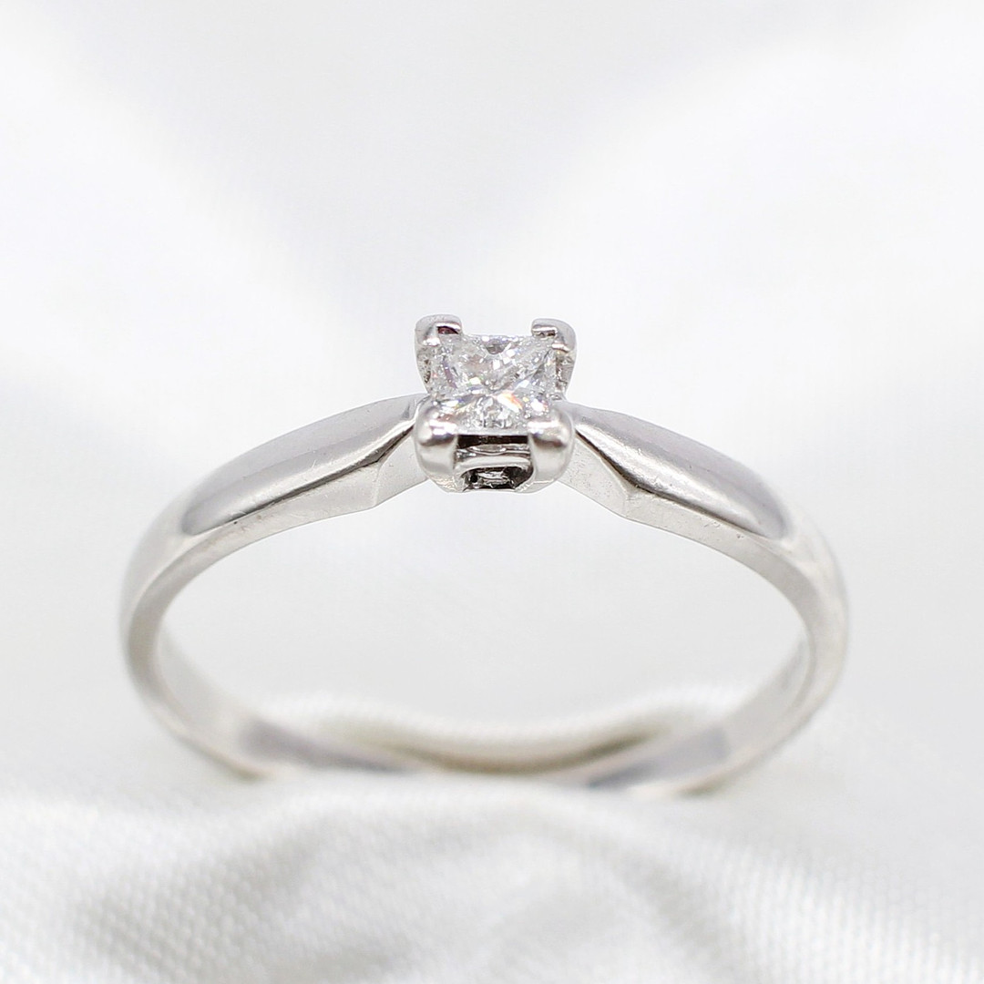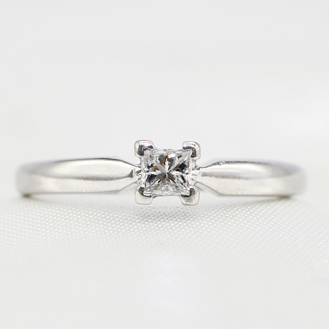 5036897. 18K DIAMOND SOLITAIRE RING PRINCESS CUT.