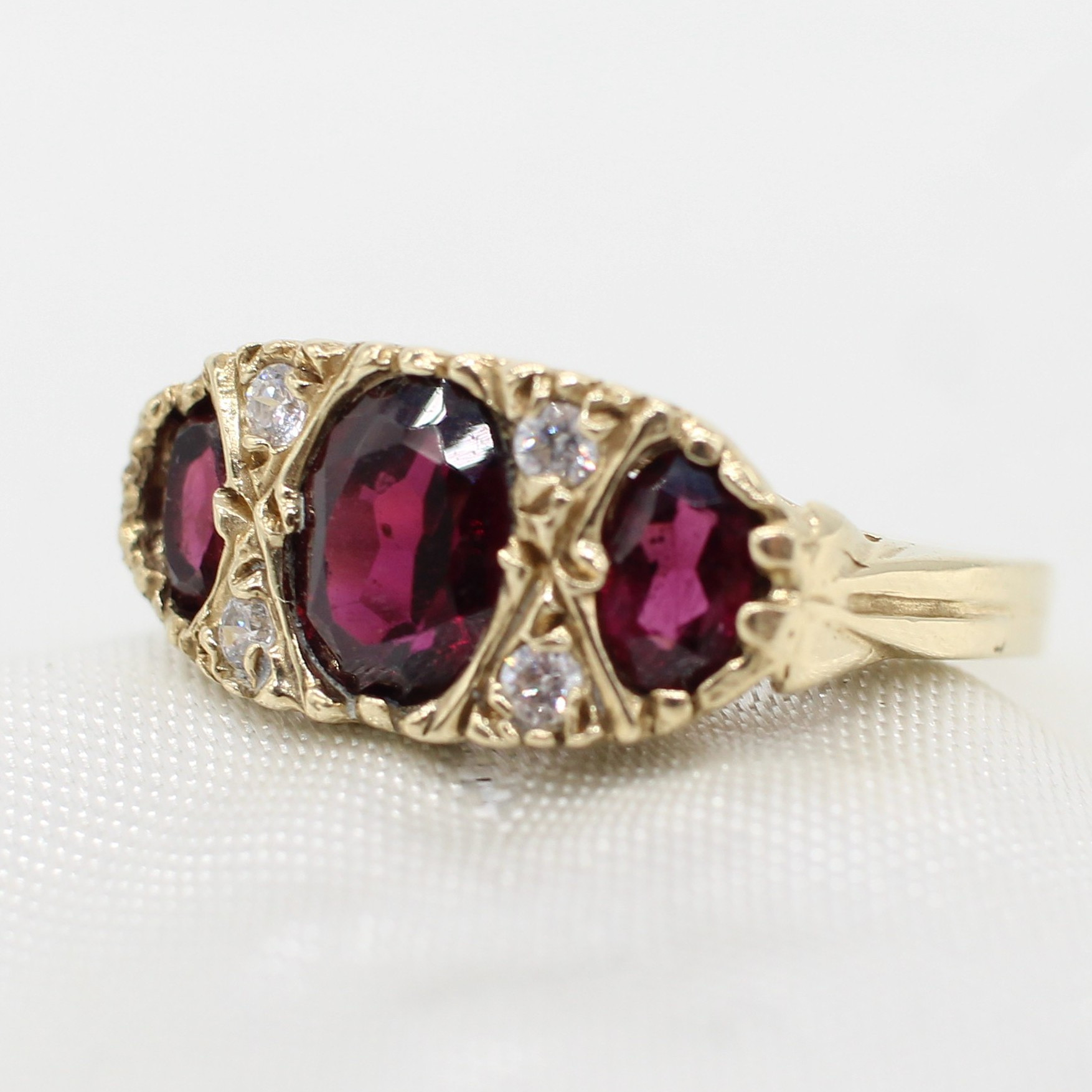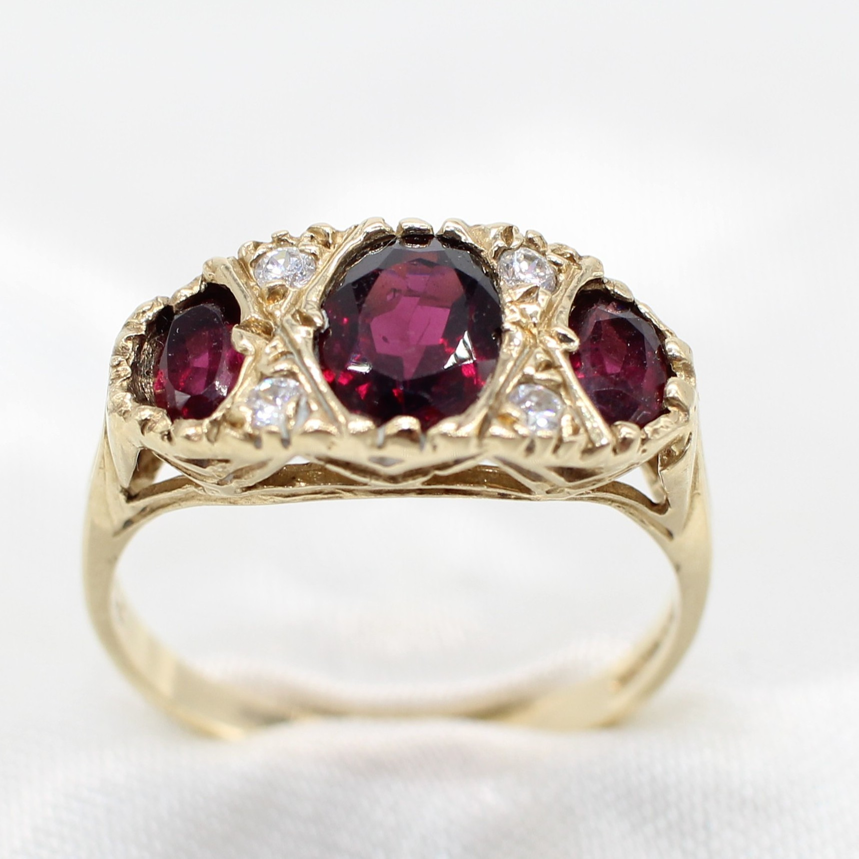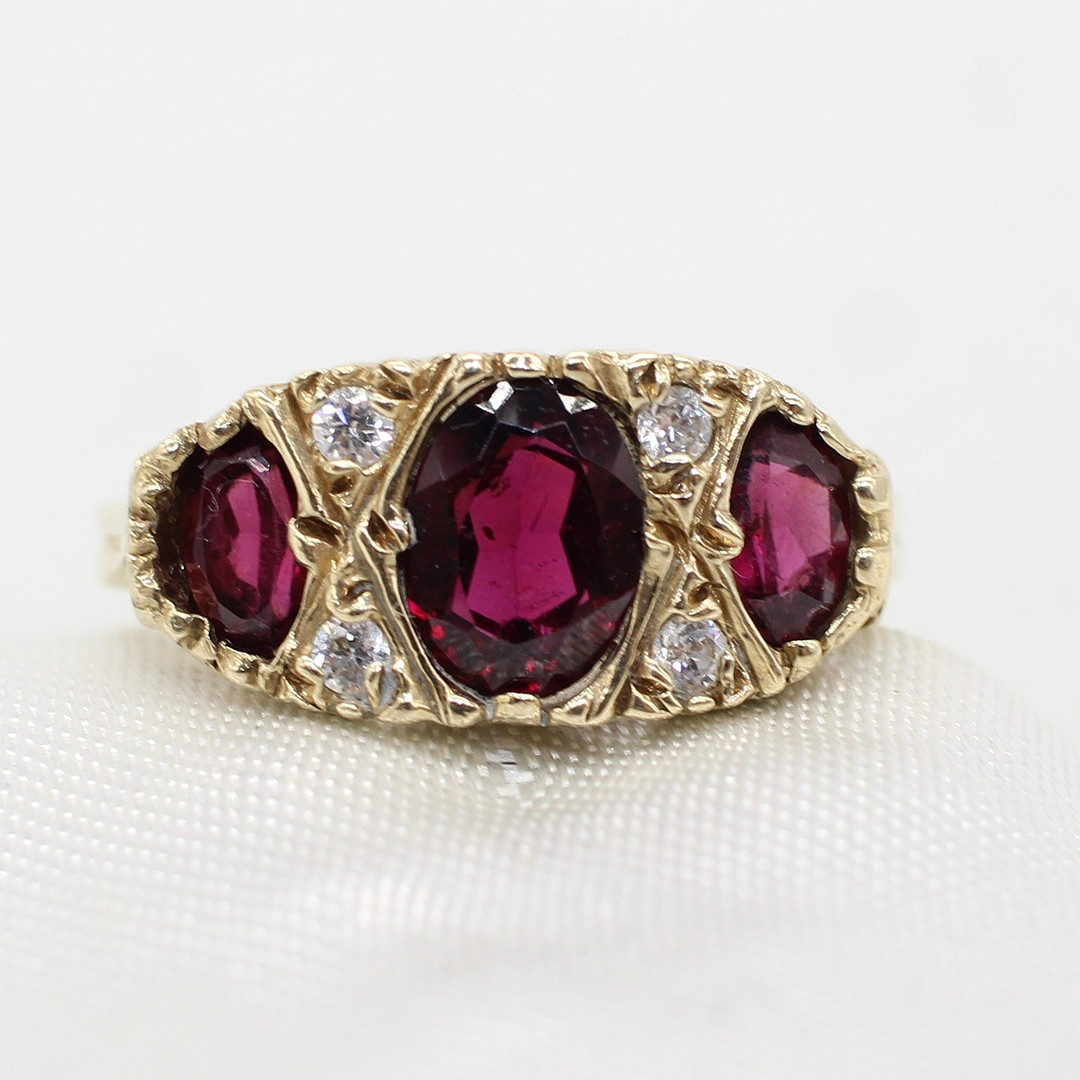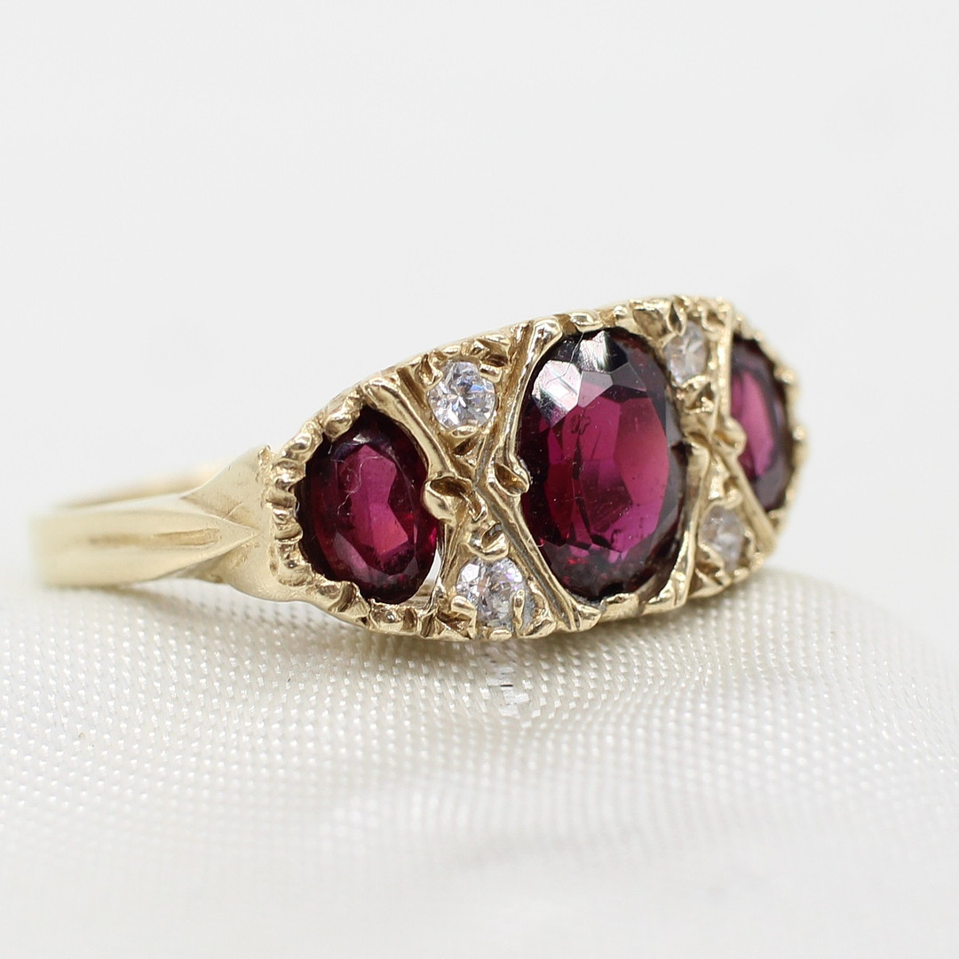 5036911. VINTAGE STYLE GARNET TRILOGY RING.