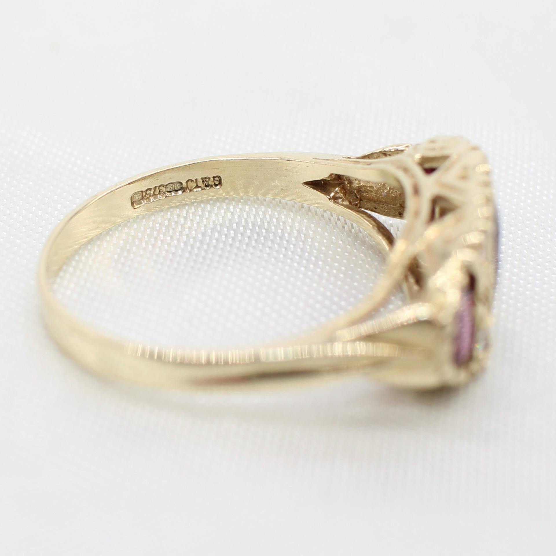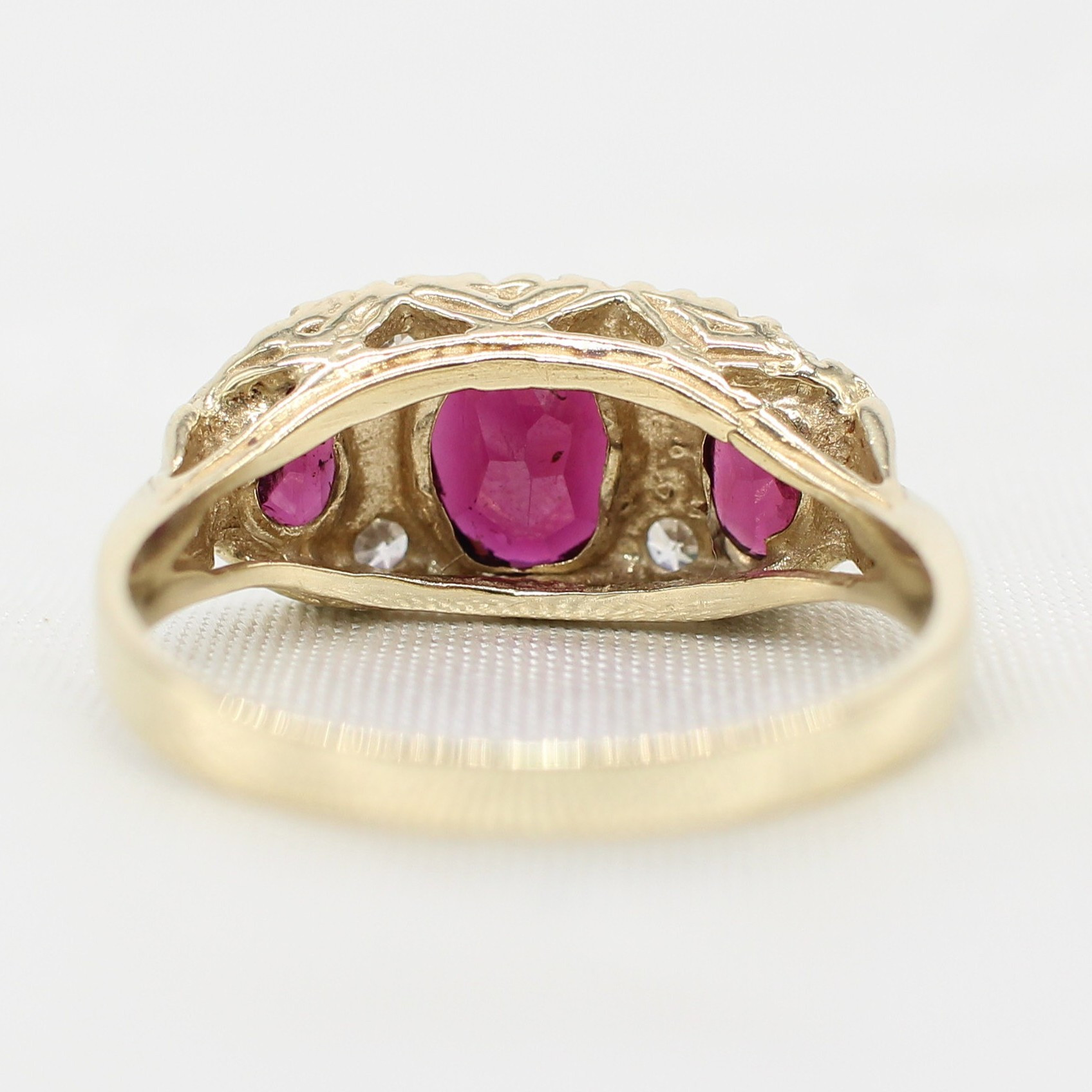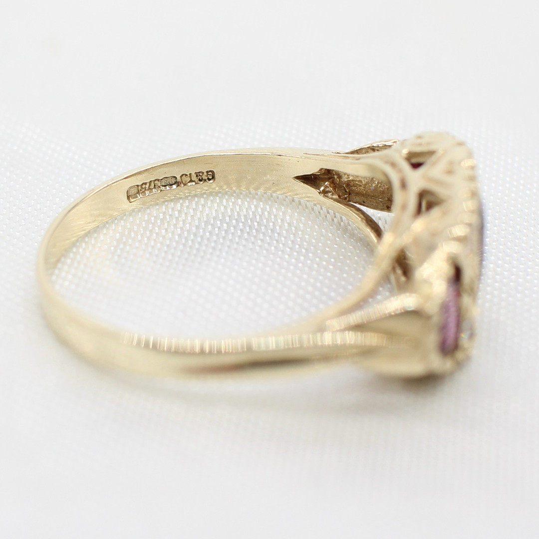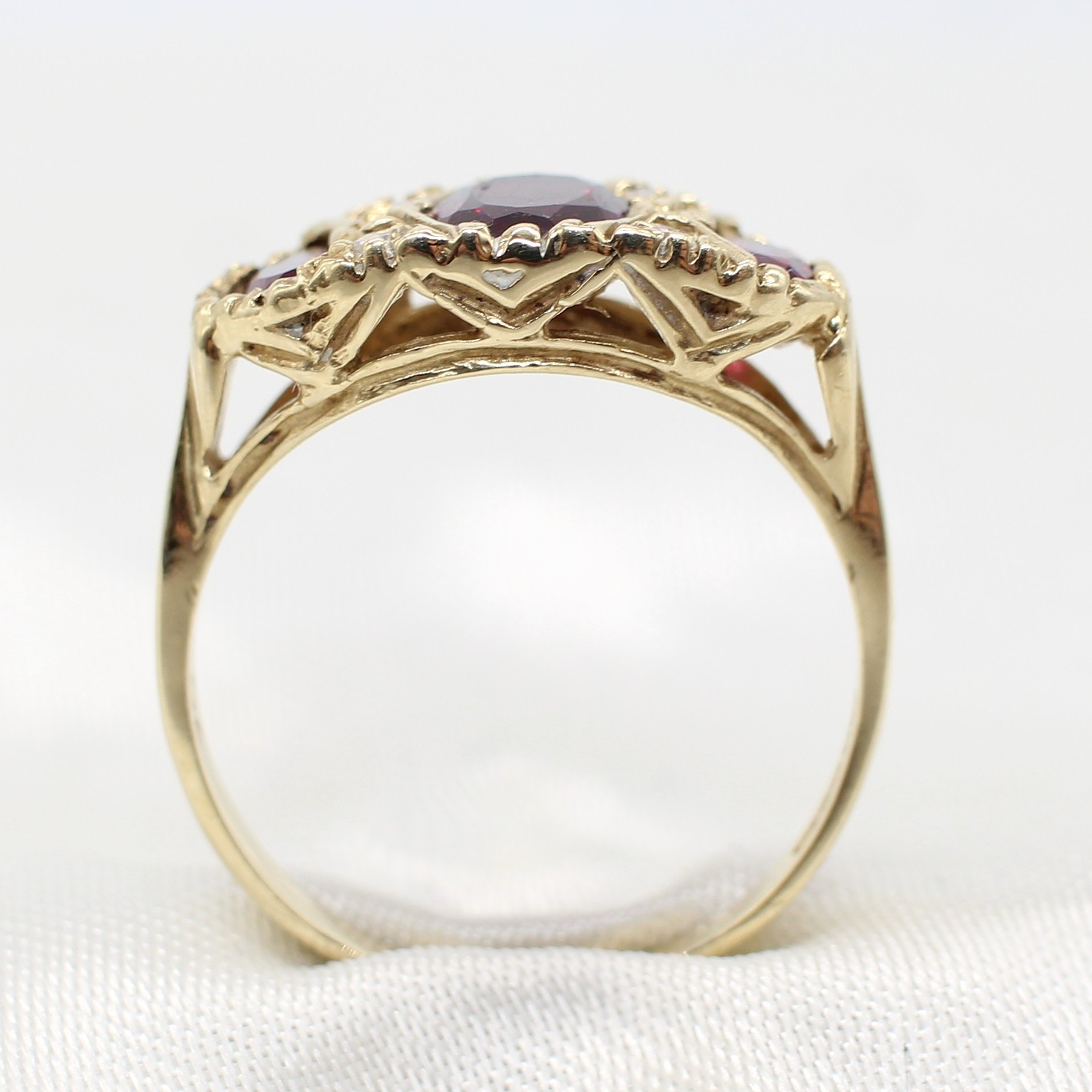 5036911. VINTAGE STYLE GARNET TRILOGY RING.