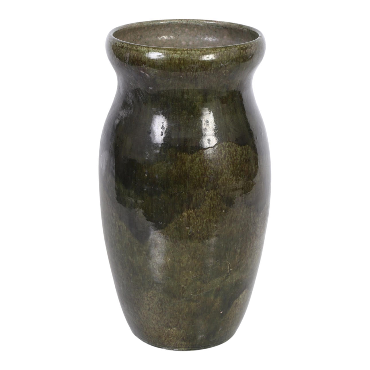Large earthenware vase decorated with green glaze, approx. 1920. Unsigned. H. 47, 25 Ø cm.