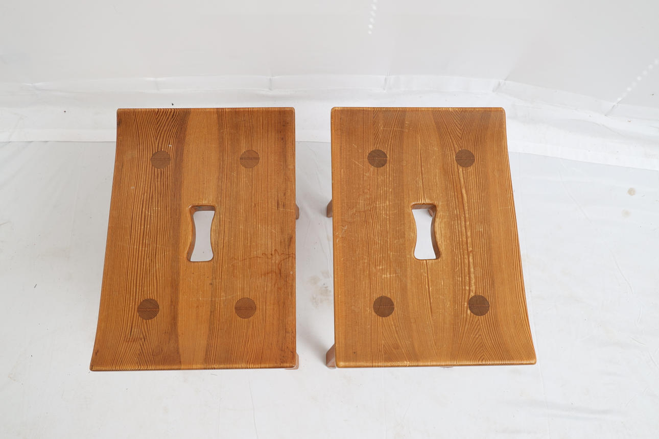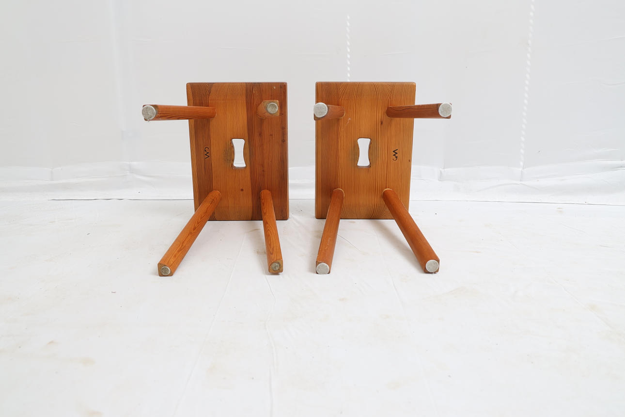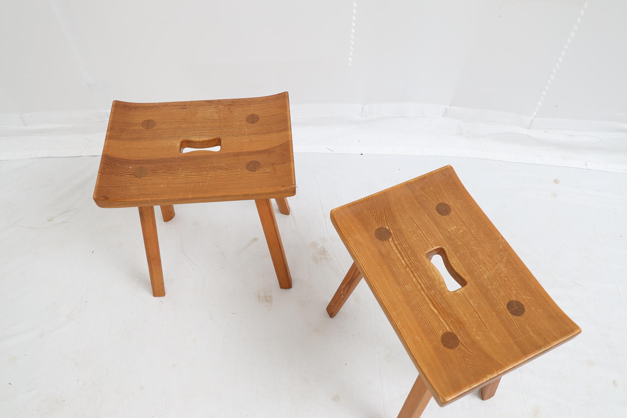 5037417. CARL MALMSTEN. Stools a pair, "Visingsö" Pine, branded "CM".