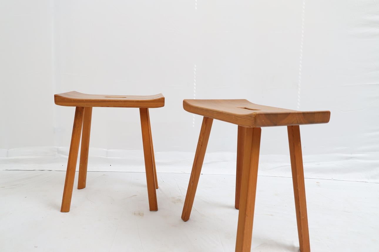 CARL MALMSTEN. Stools a pair, "Visingsö" Pine, branded "CM".