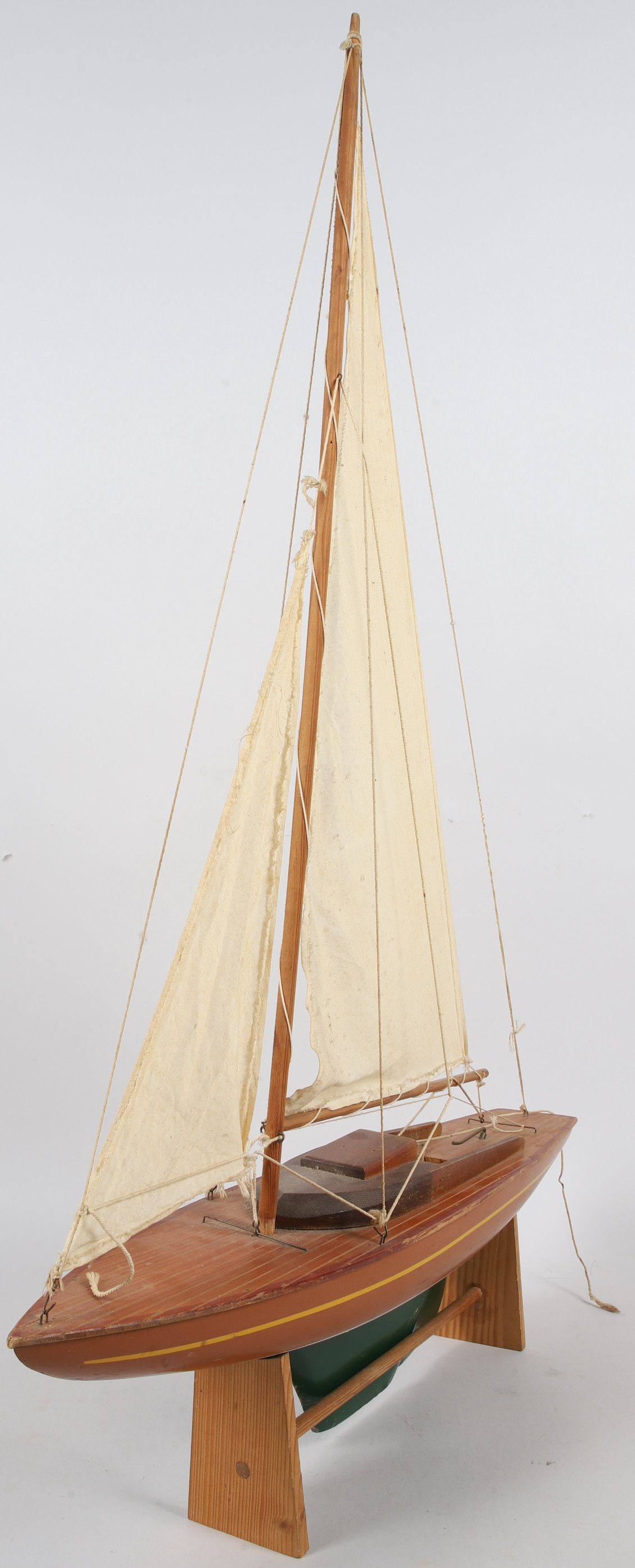 5037446. MODEL BOAT, sailboat, wood & textile.