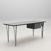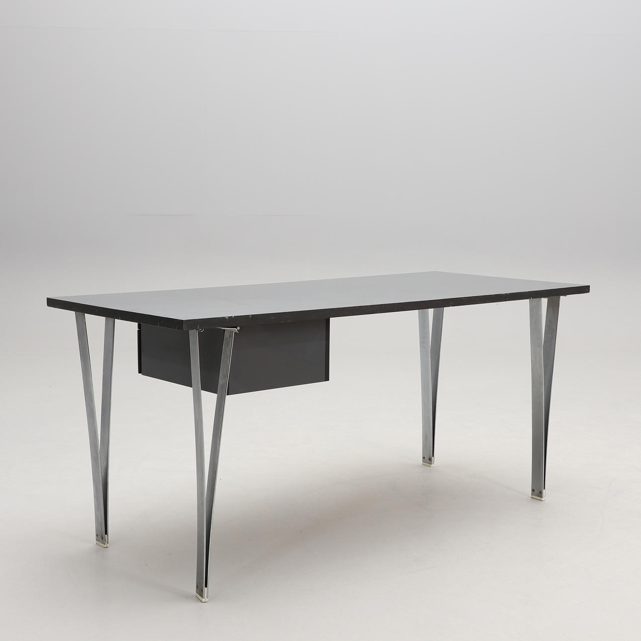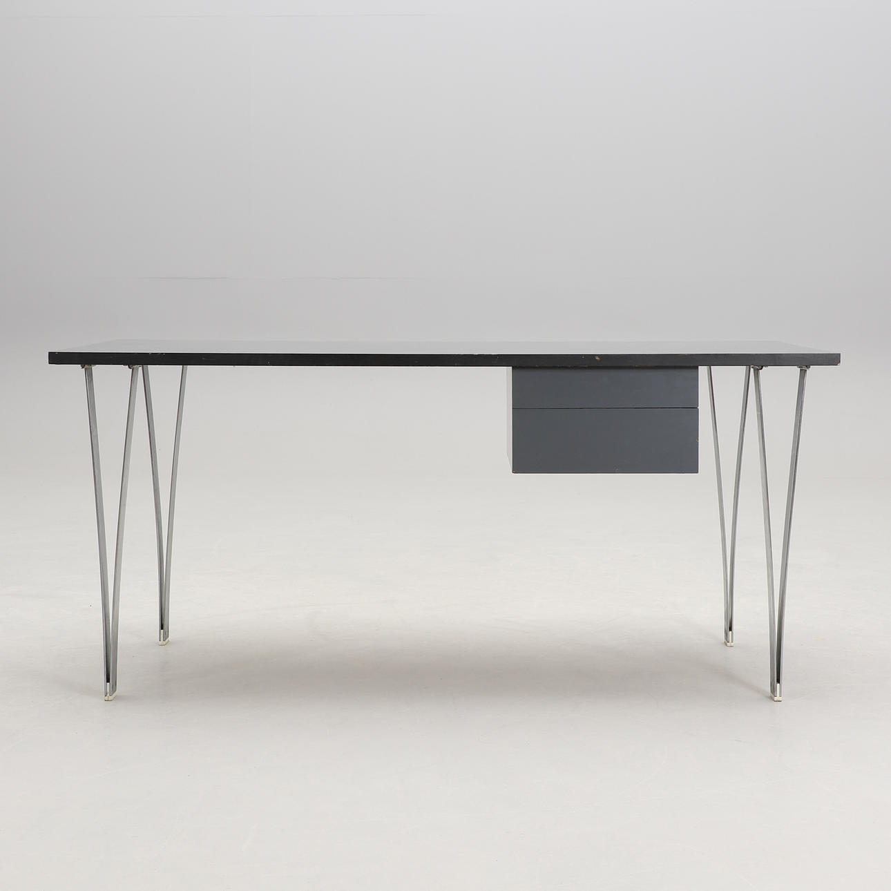 Laminate top. Two drawers. Metal legs.