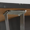 Wear from use. Marks and scratches. Some minor impact marks to edges/corners. Veneer loss in one corner on the underside of the tabletop. One leg is slightly loose.
