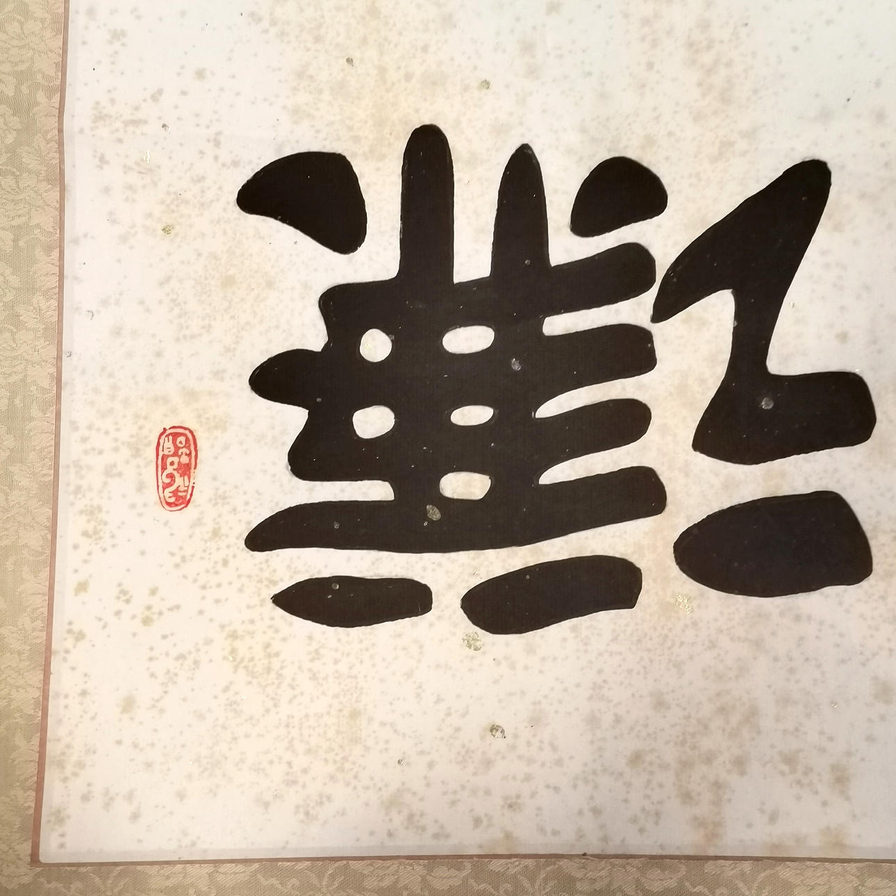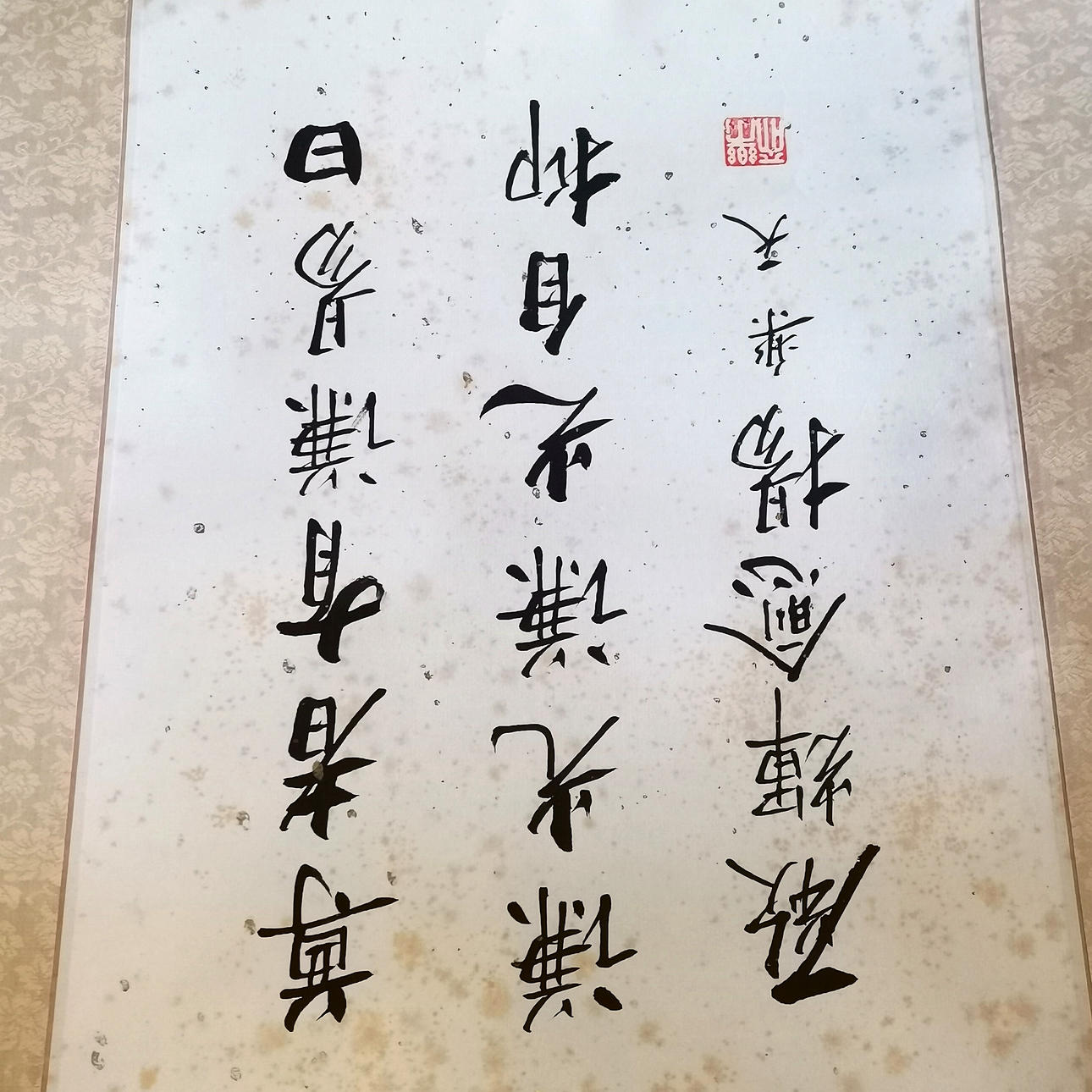 Chinese wall scroll with character marks (poem) - 96cm x 38cm.