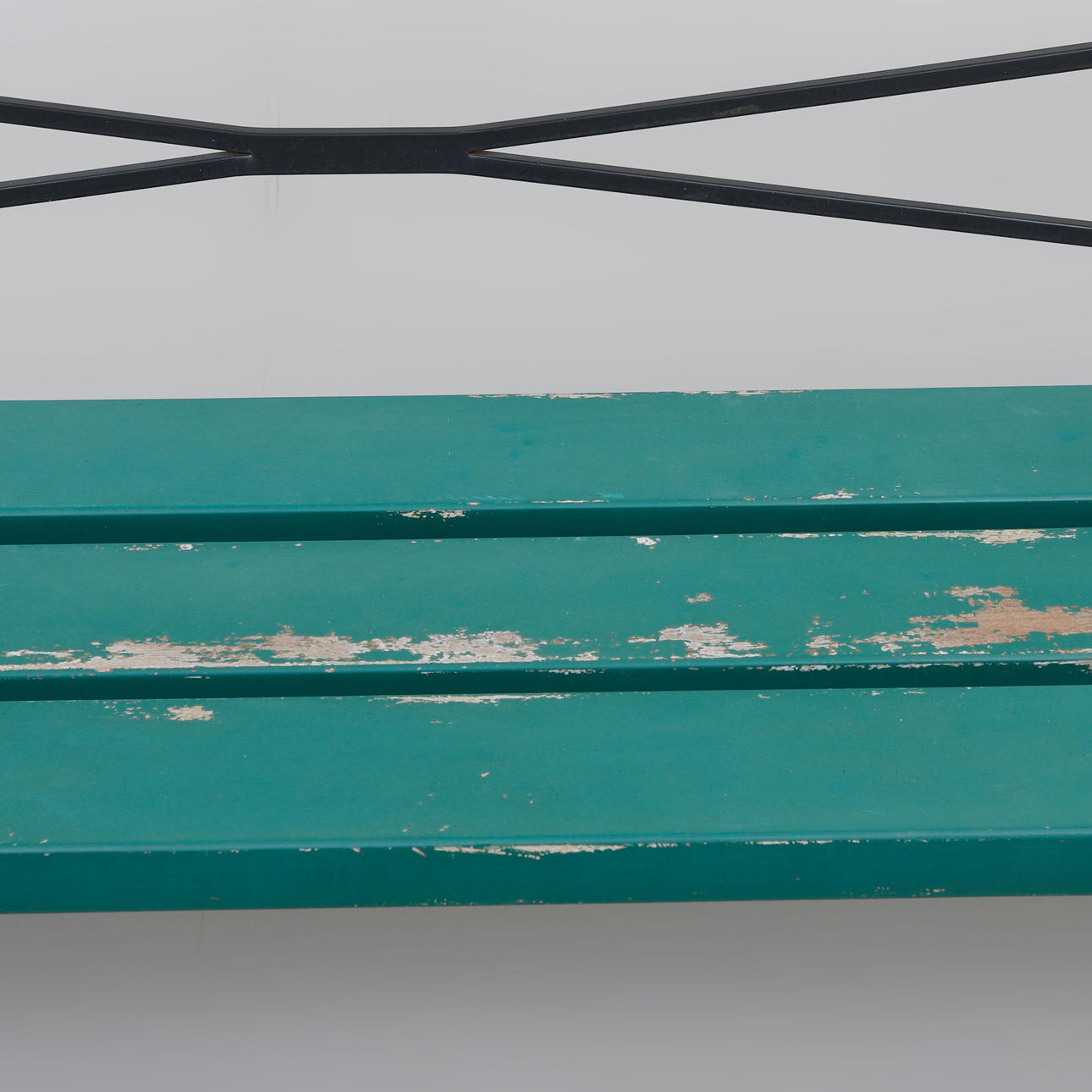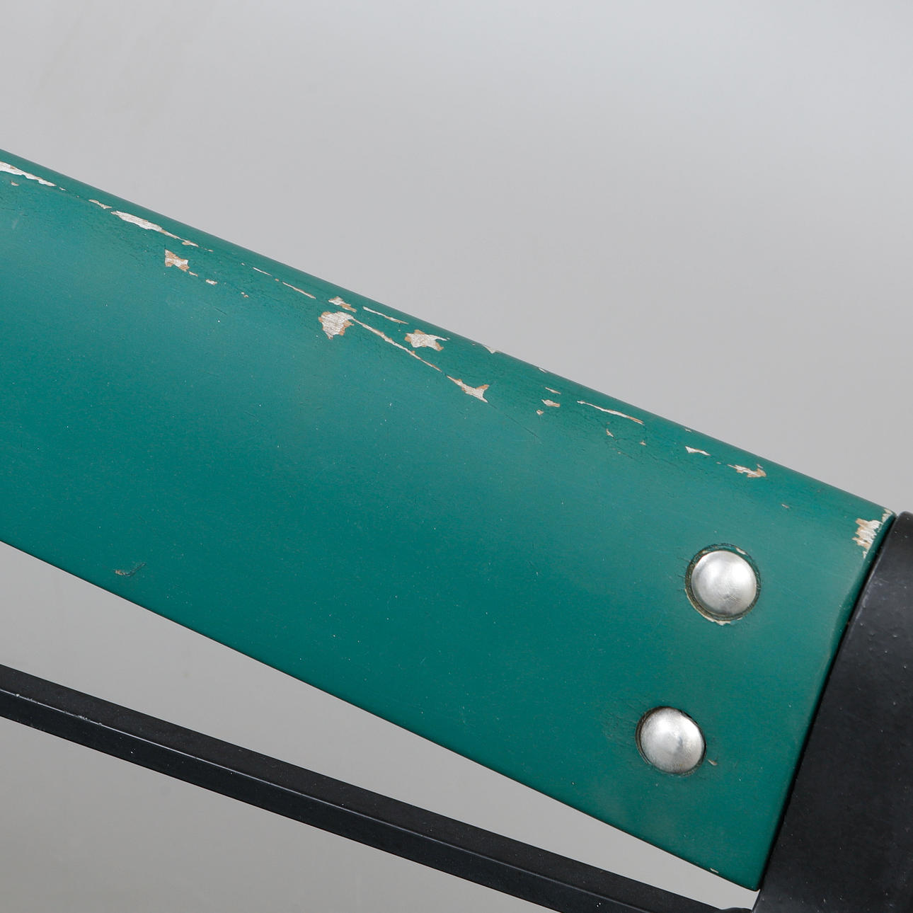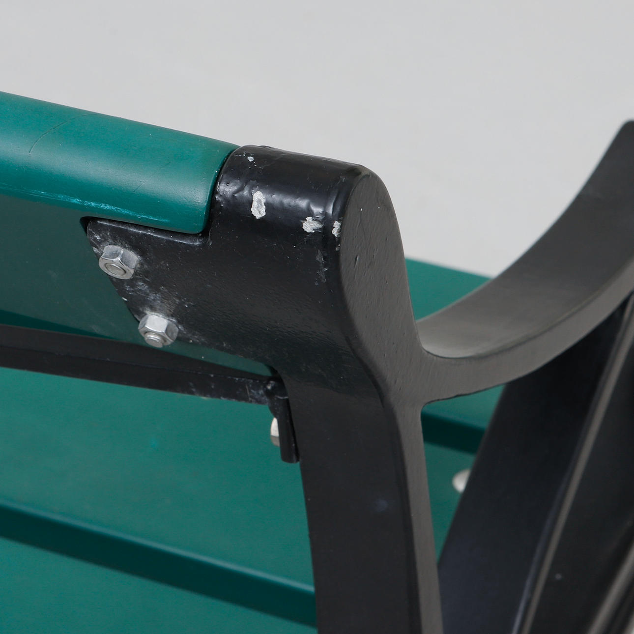 Frame in black-lacquered aluminium with seat and back in green-lacquered wood. Marked in the casting. Length approx. 200 cm, seat height 42 cm, back height approx. 84 cm.