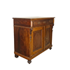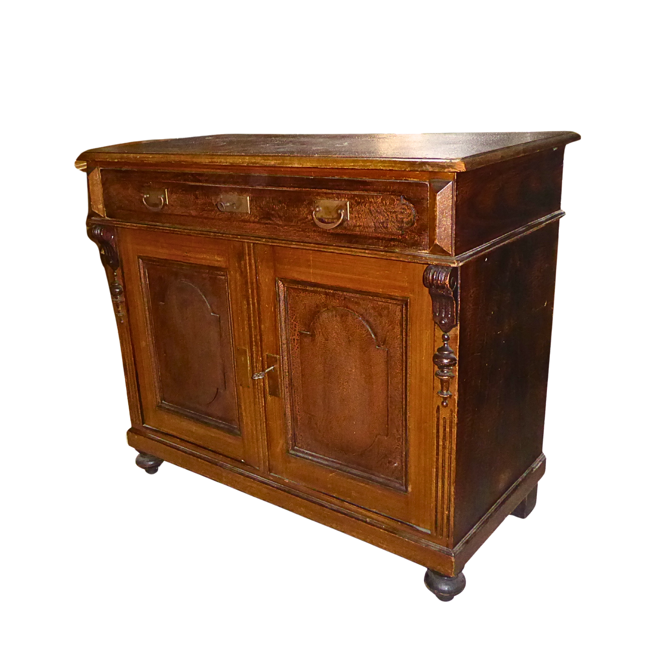 Antique two-door walnut commode with a full-width frieze drawer and profiled panel fronts. The interior features a fixed shelf. The piece of furniture has an authentic patina.