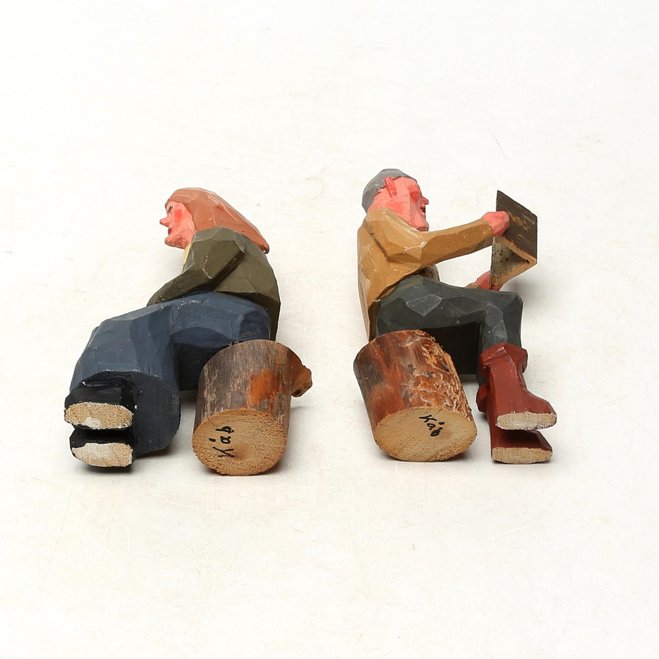 5037811. WOODEN FIGURES 2 pcs, signed Kåb.