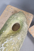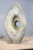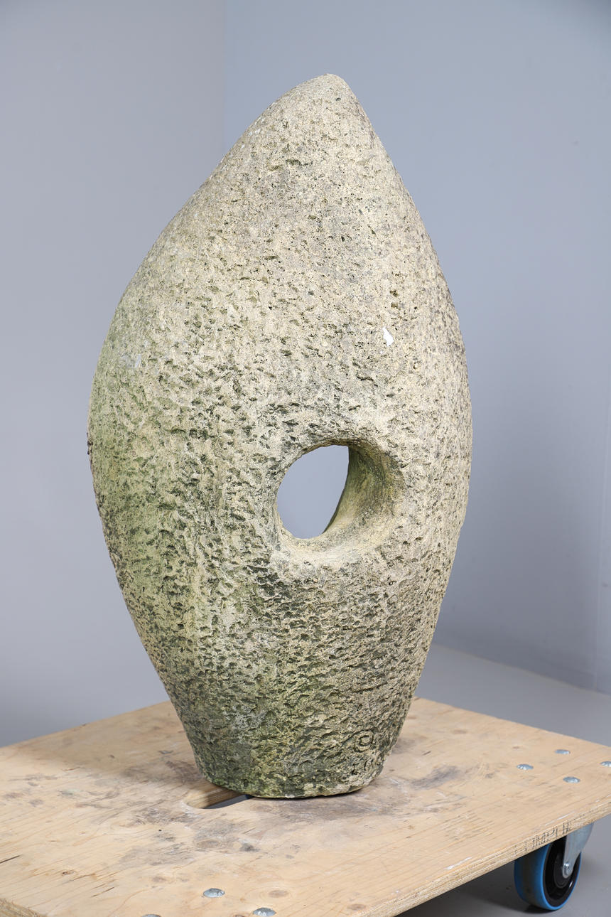 To include two reconstituted stone statues, possibly modelled off Celtic stones, with carved scroll decoration and holes. Size of largest, 130cm high. (2).