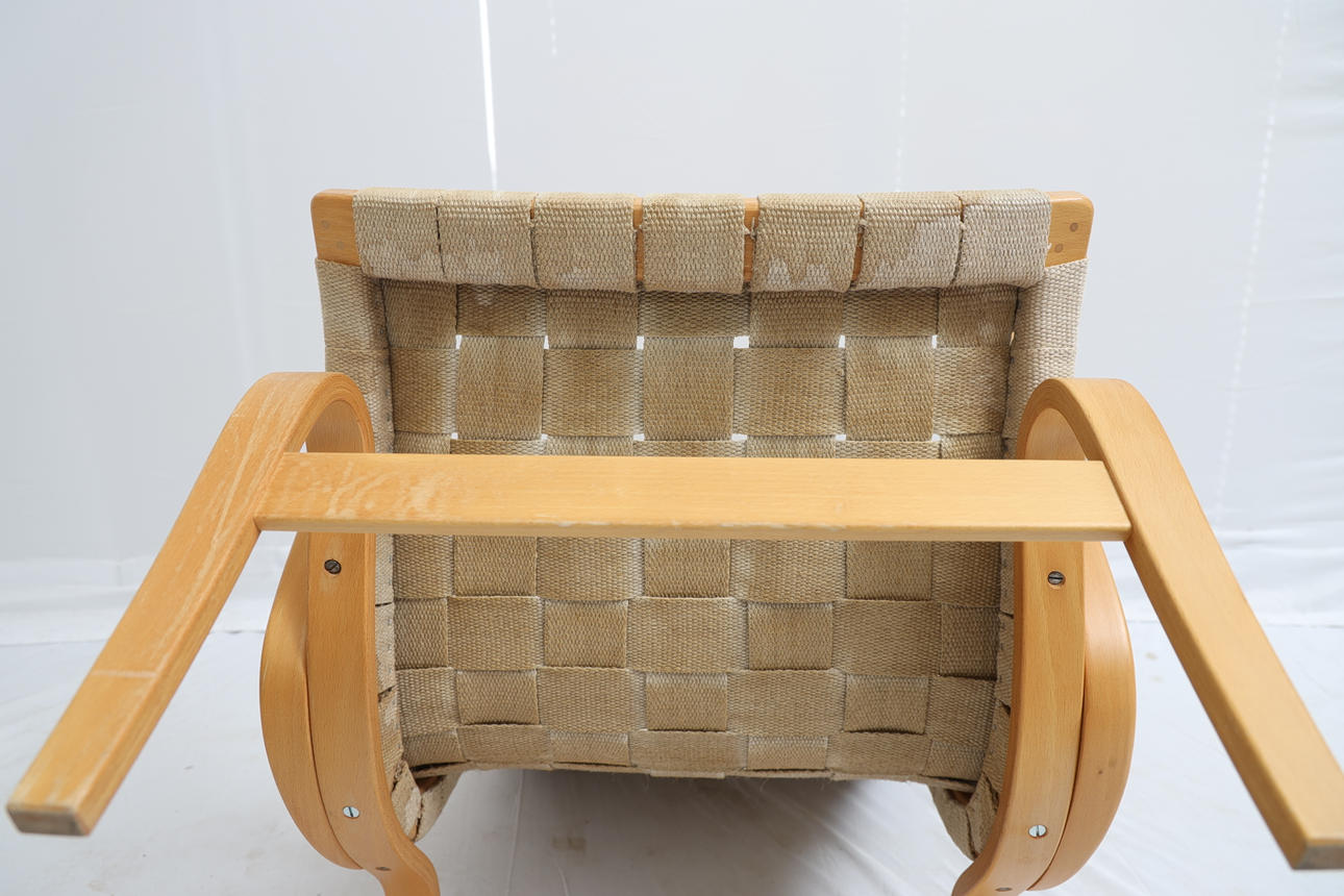 Laminated beech. Upholstery of webbing. Stamped.
