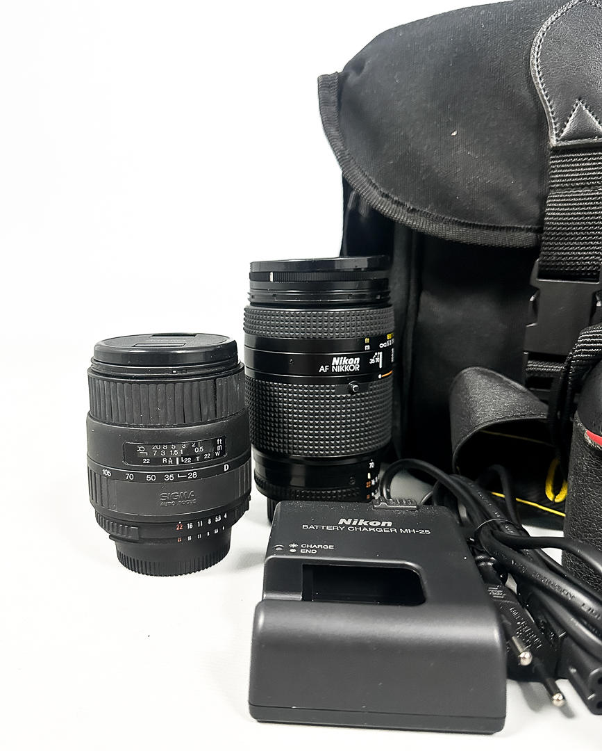 Camera, Nikon D800 Lens, AF Nikkor, 35-70 mm, 1:2.8 D Lens, Sigma 28-105 mm + accessories and bag.
