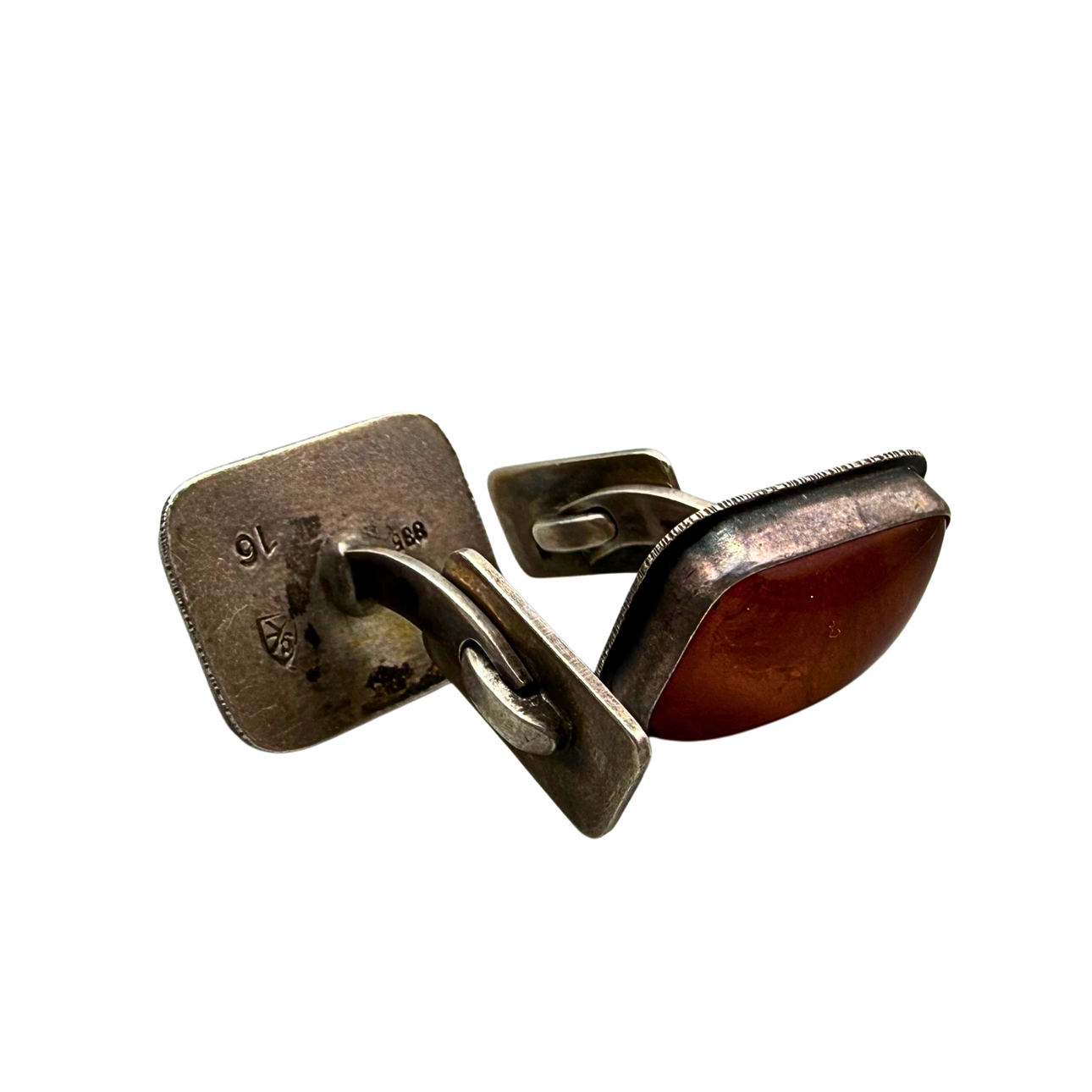 Two amber cufflinks in 835 silver by goldsmith Georg Kramer.
