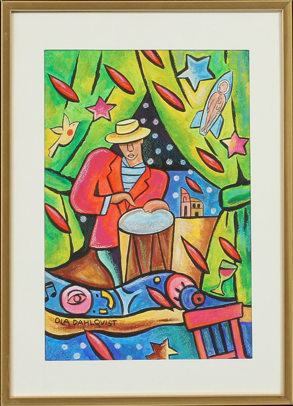 503808. OLA DAHLQVIST. Figure composition, mixed media, signed.