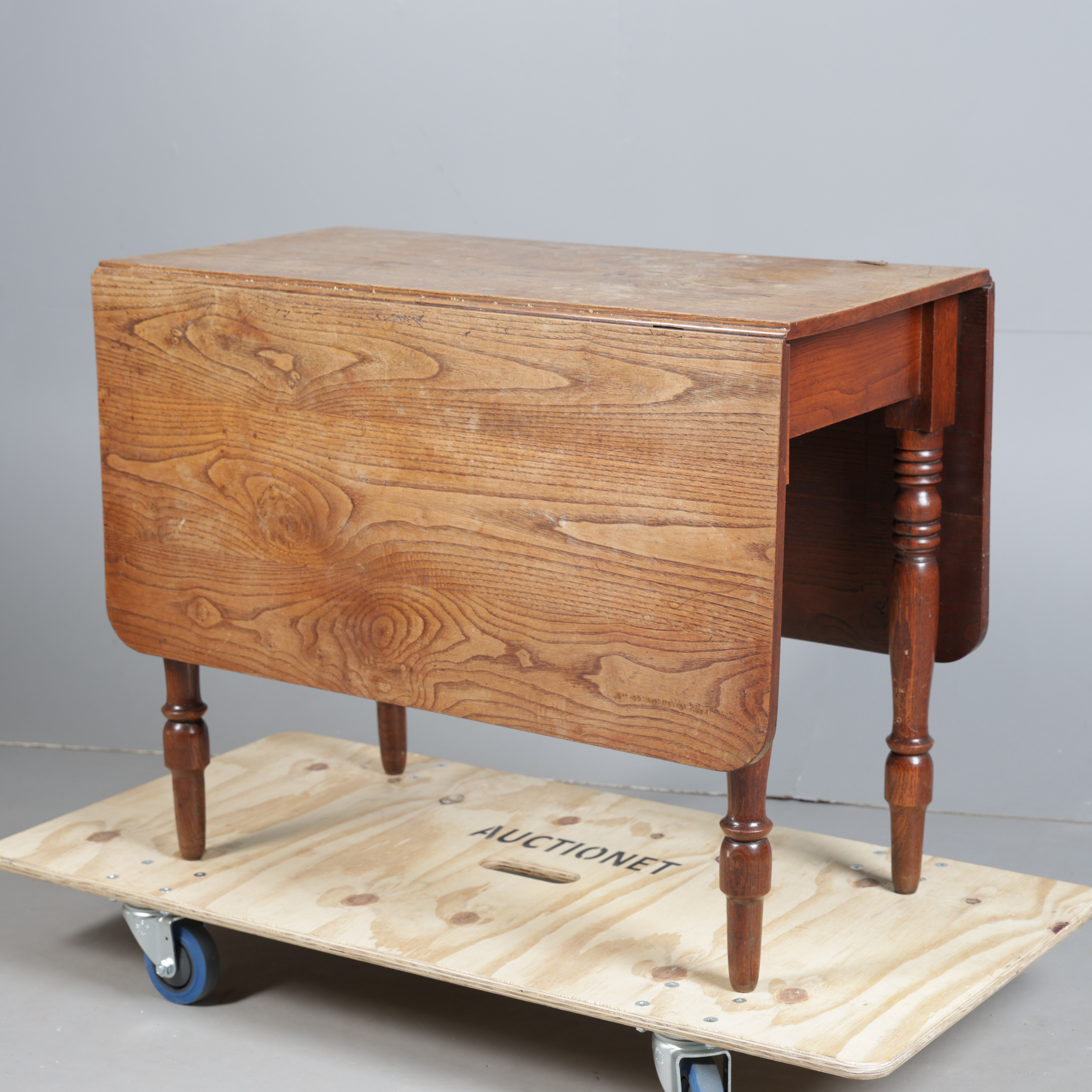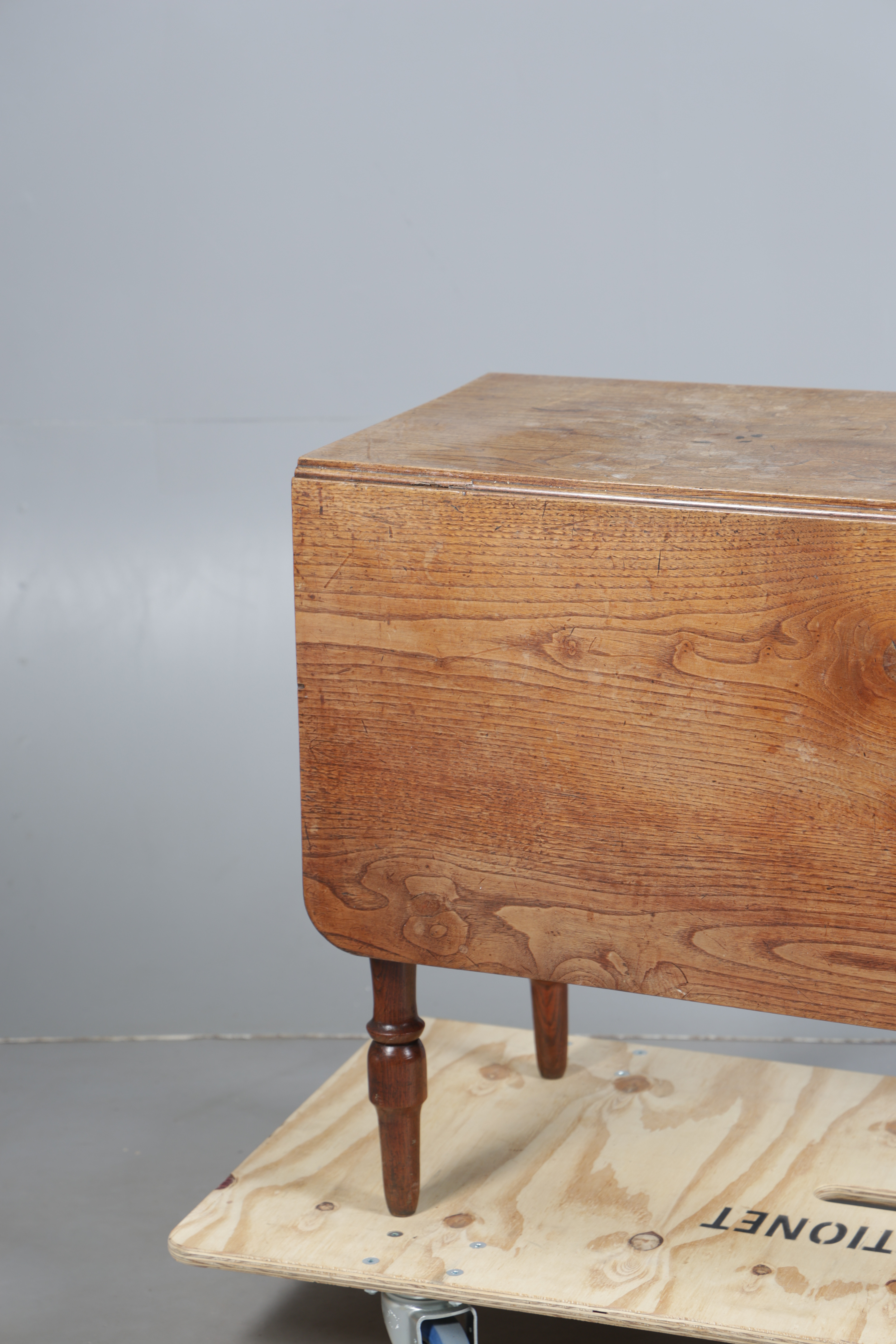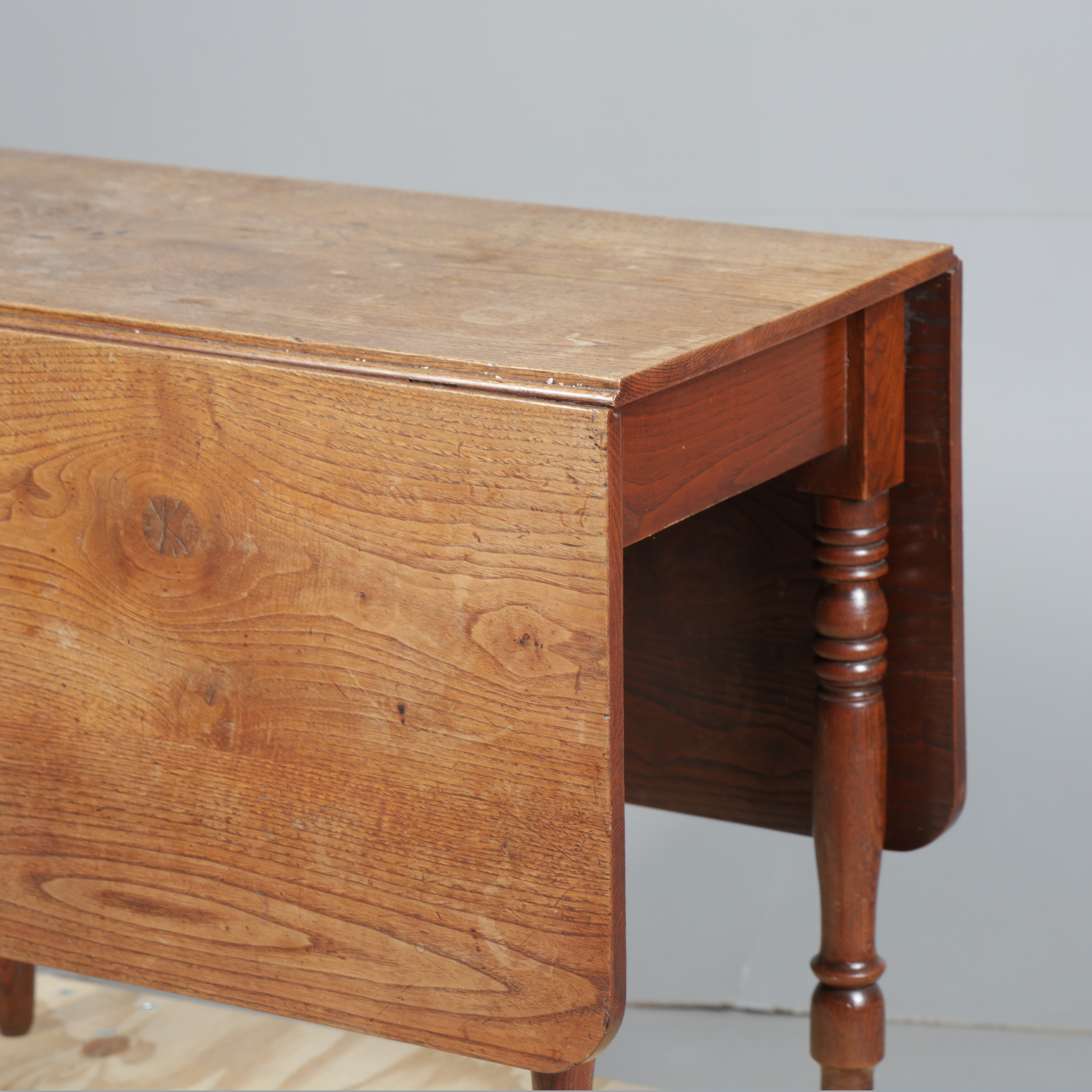 5038107. A 19TH CENTURY ELM DROP LEAF TABLE.
