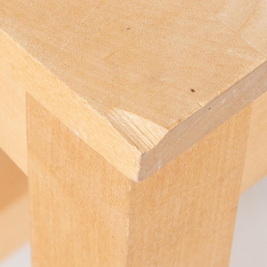 Solid birch with slightly dished seat. Rectangular shape with straight legs and crossbar.