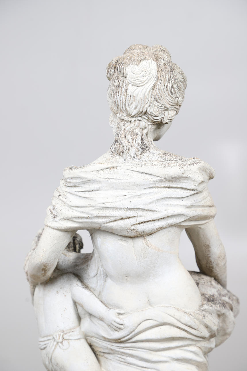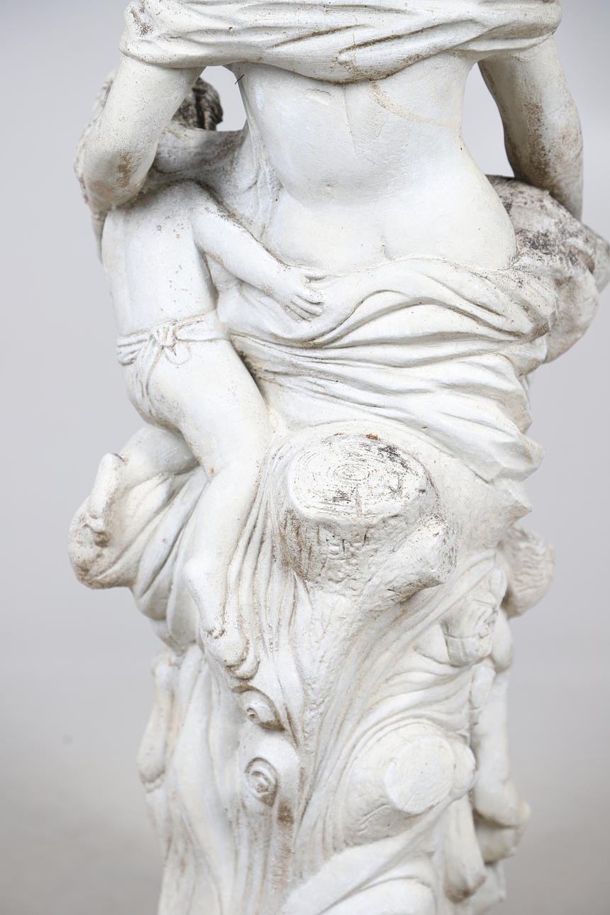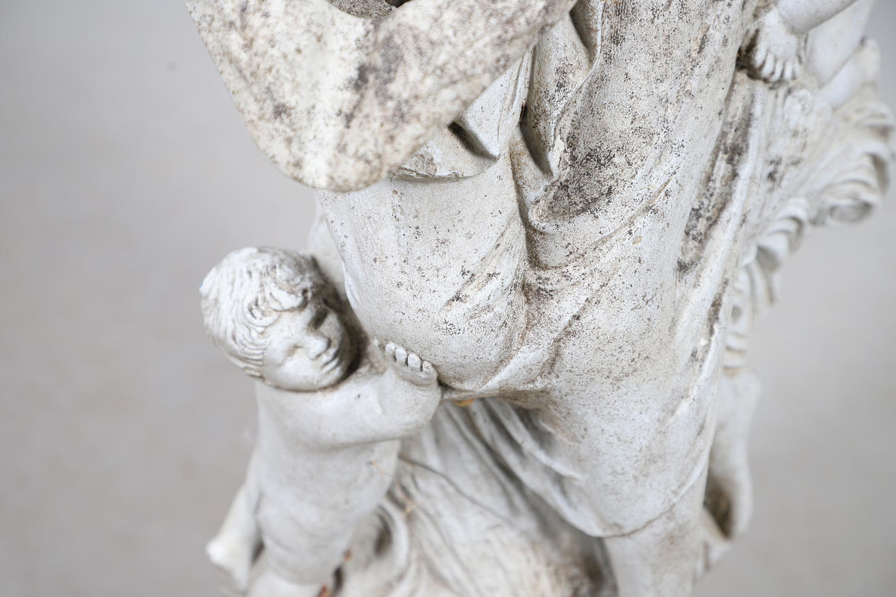 modelled as a classical maiden in flowing dress with a young child under her arm, 85cm high.