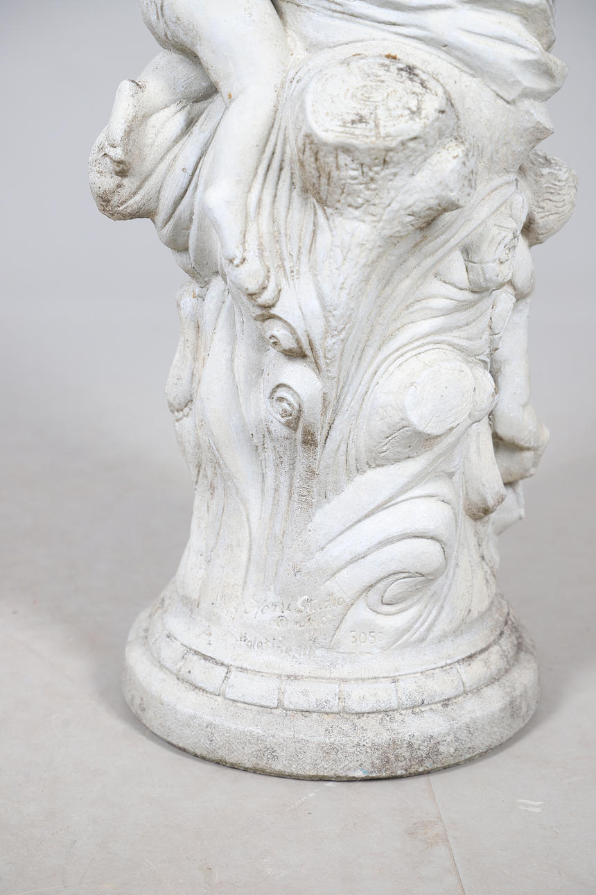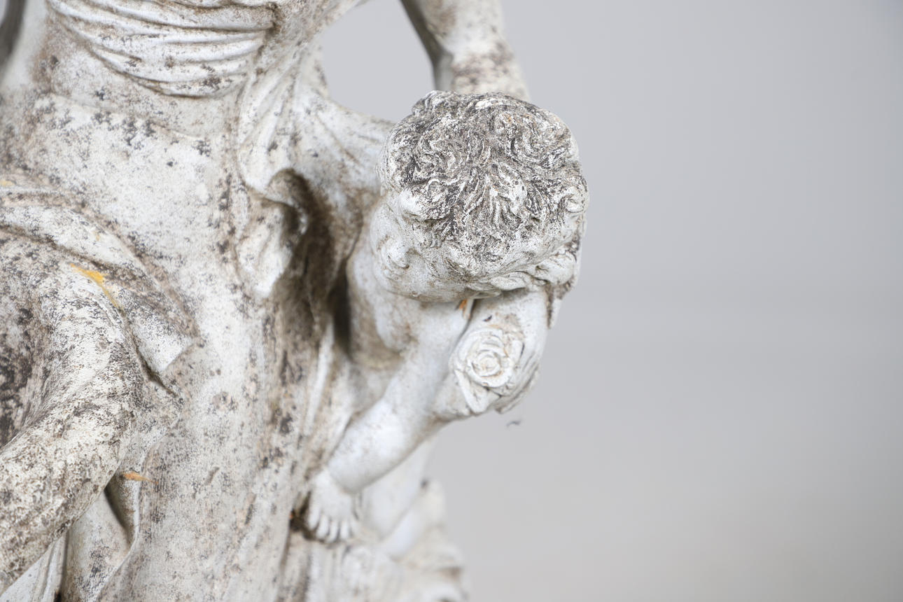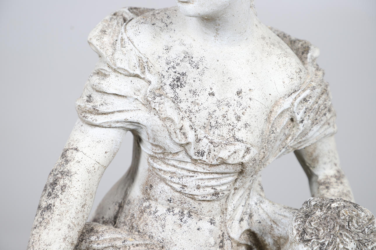 modelled as a classical maiden in flowing dress with a young child under her arm, 85cm high.