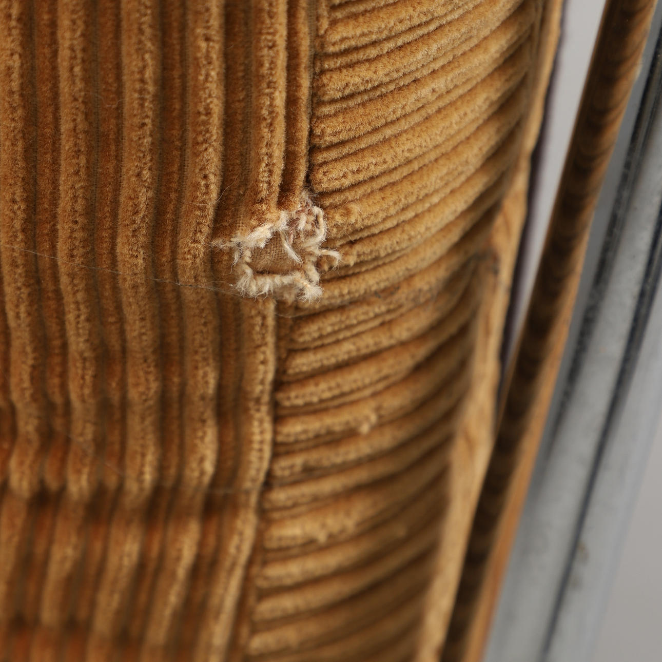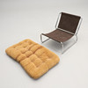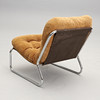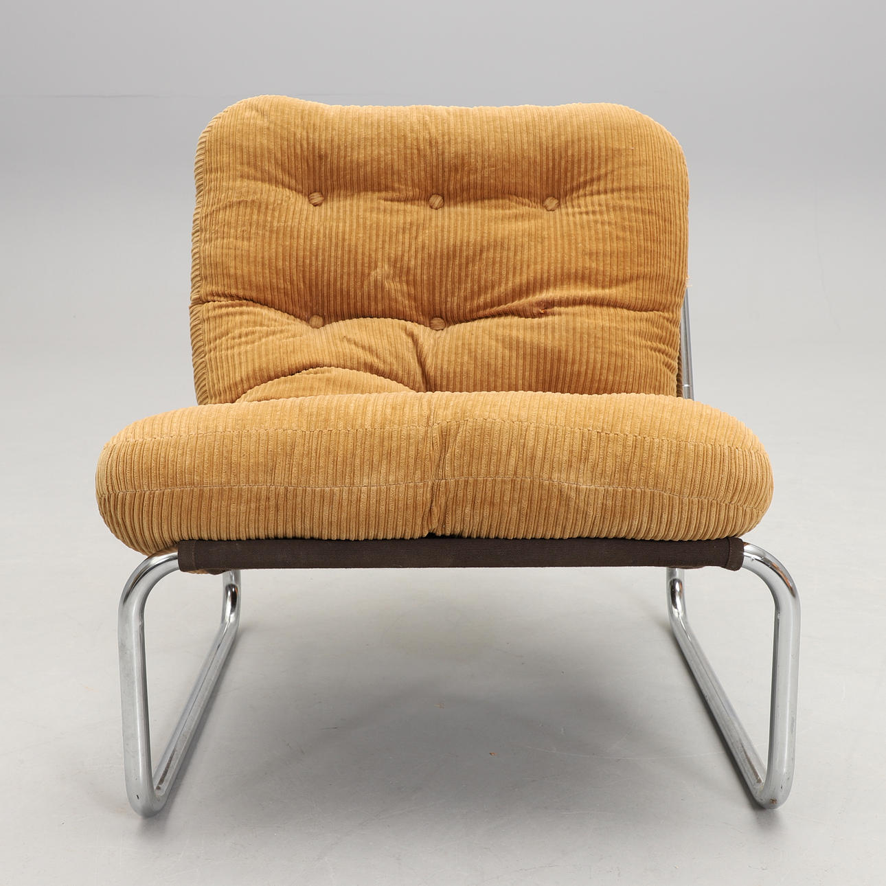 Chromed tubular steel frame with fabric upholstery. Loose button-tufted cushion with corduroy upholstery.