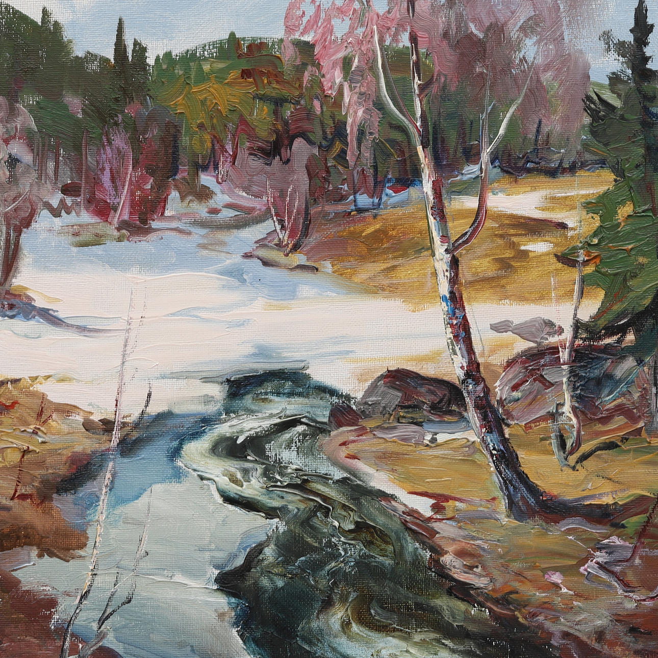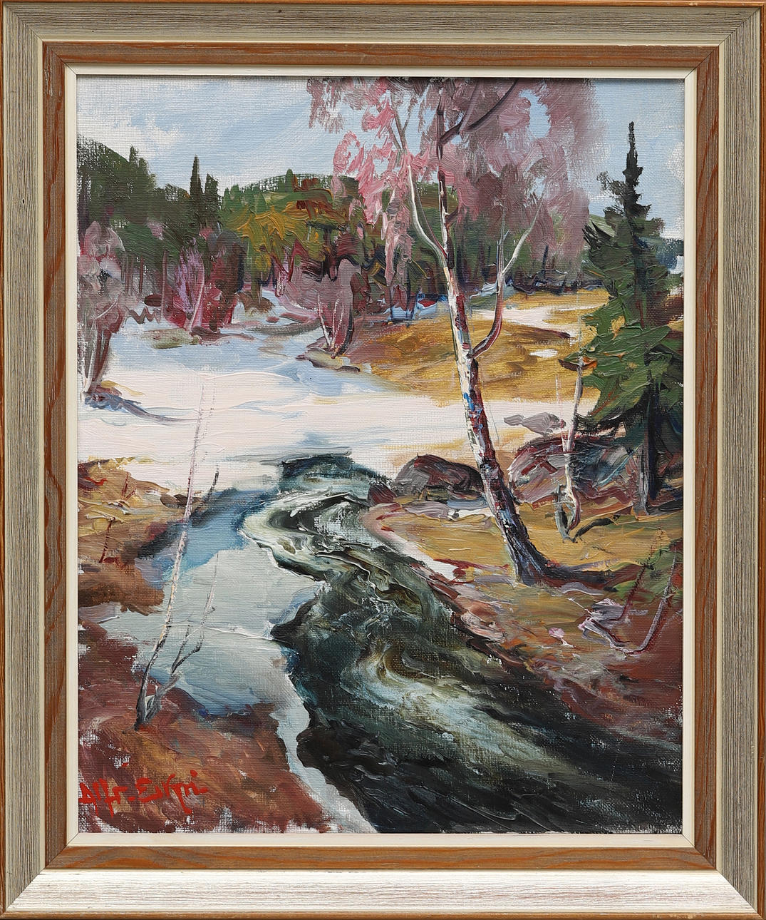 Landscape with river. 46x38 cm. Dimensions including frame 58x47 cm.