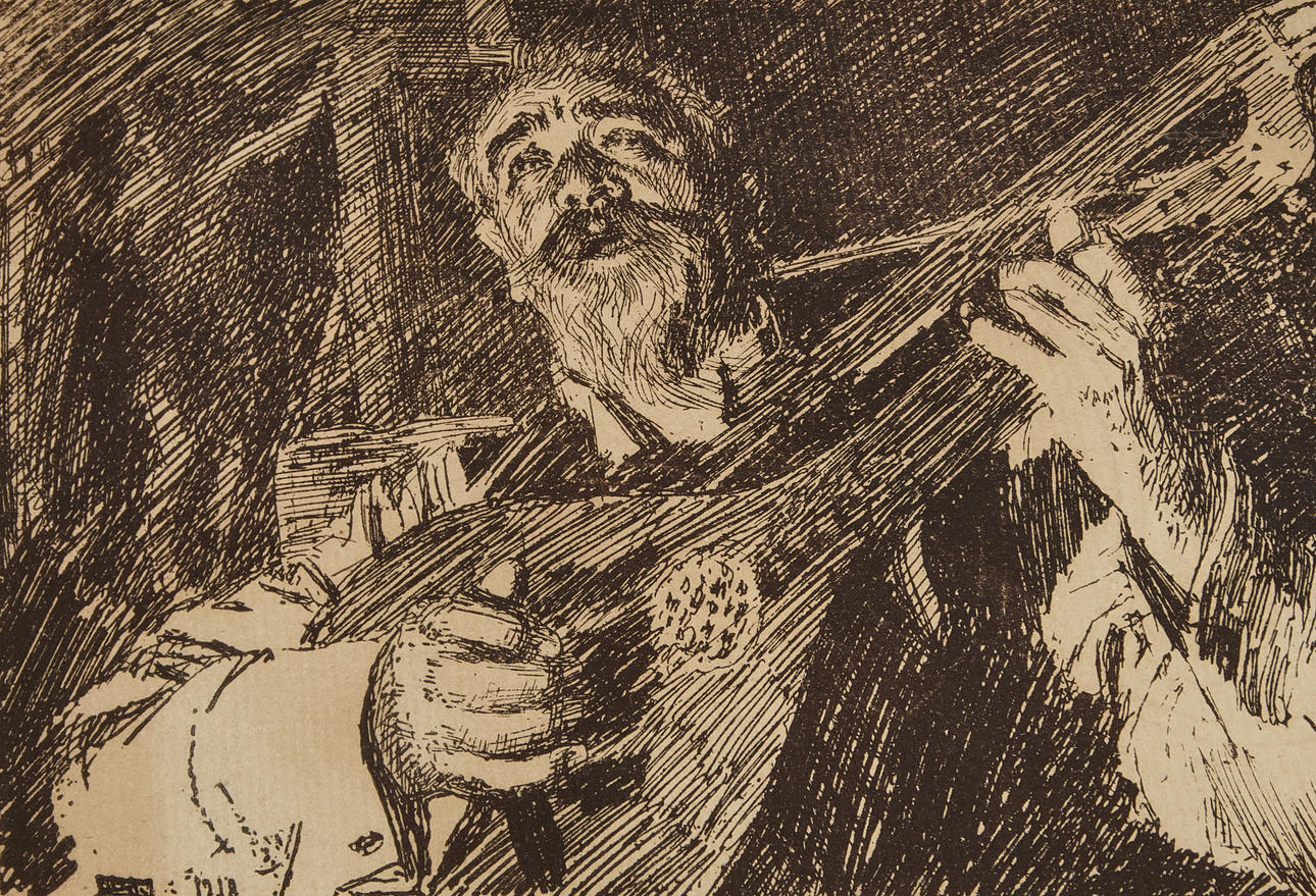 5038833. AFTER ANDERS ZORN. Lute player, etching, signed and dated in the print.
