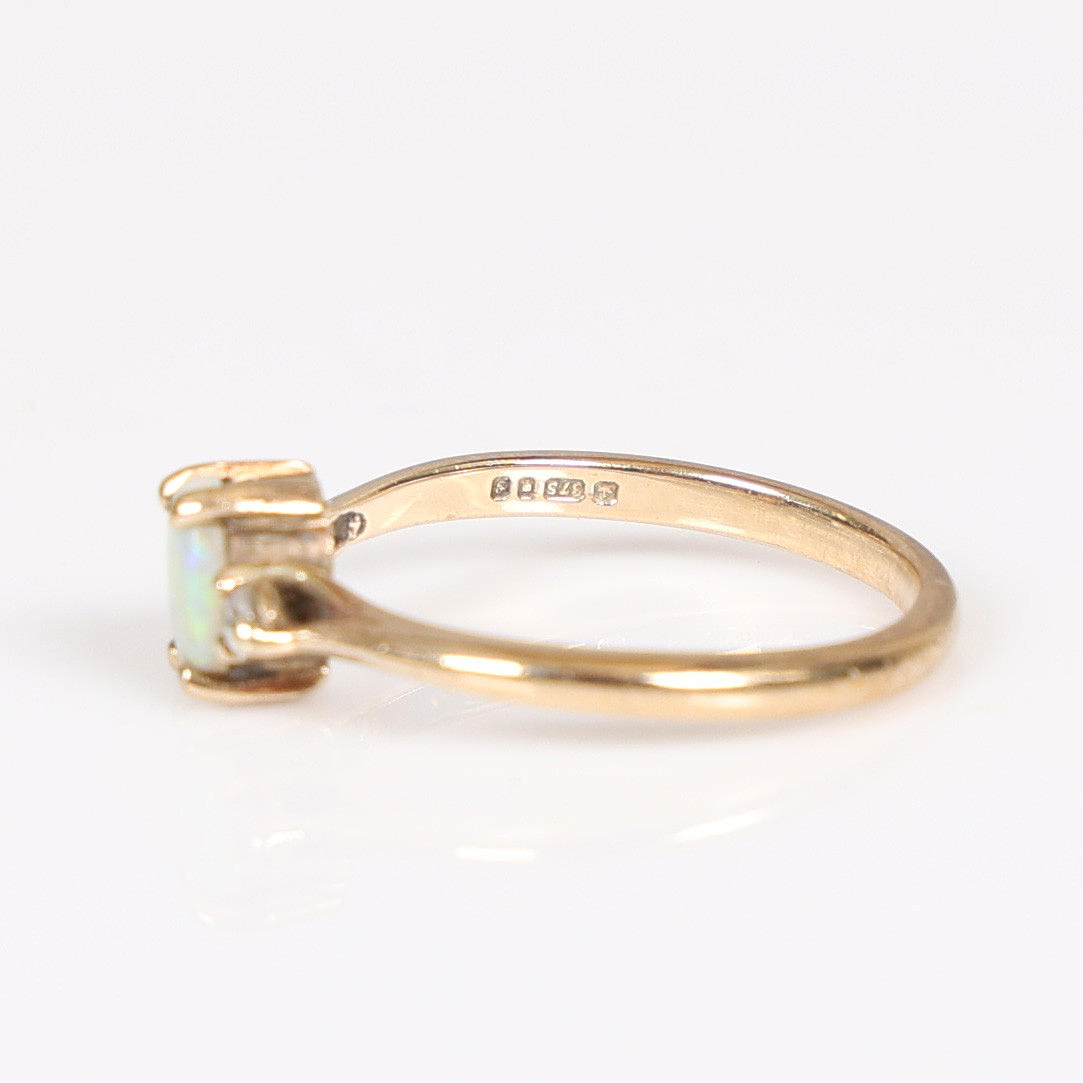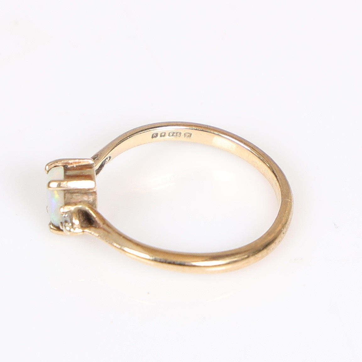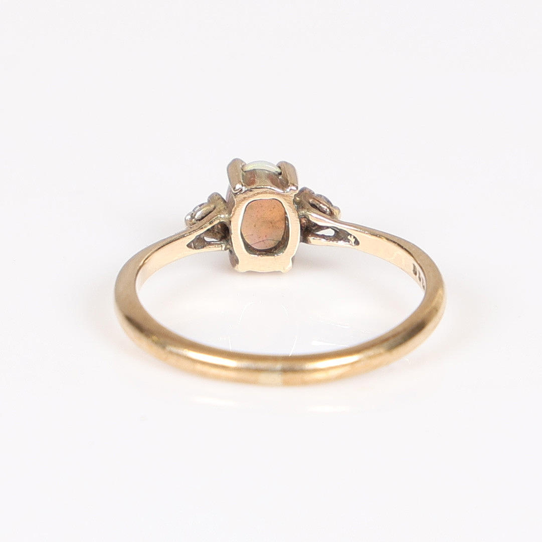 5038903. A 9 CARAT GOLD OPAL AND DIAMOND SET RING.