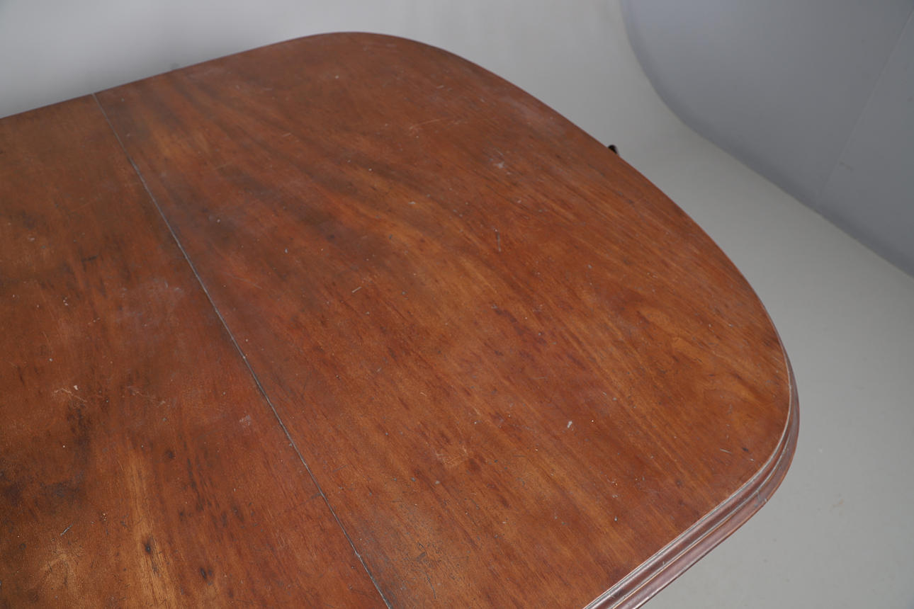 REGENCY-STYLE MAHOGANY DINING TABLE WITH EIGHT CHAIRS.