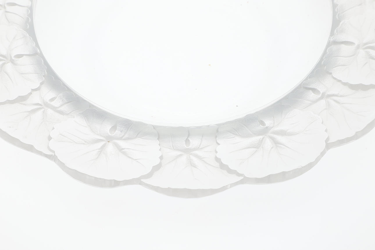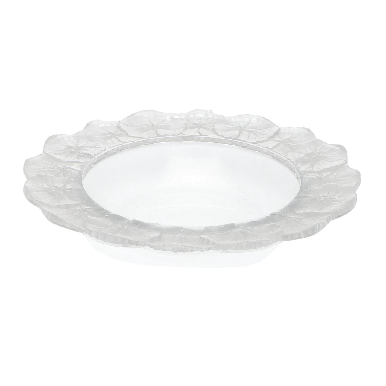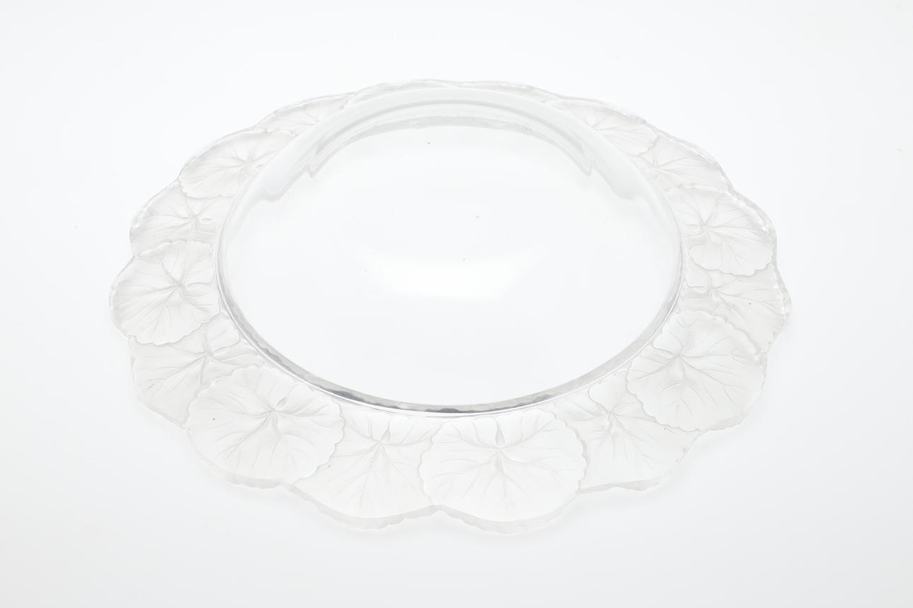 A modern Lalique clear and frosted glass bowl in the Honfleur design, moulded with flower heads around the rim. Signed to the base, Lalique, France. 27.5cms diameter.