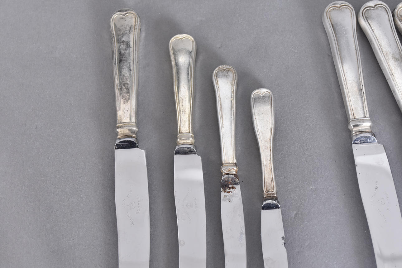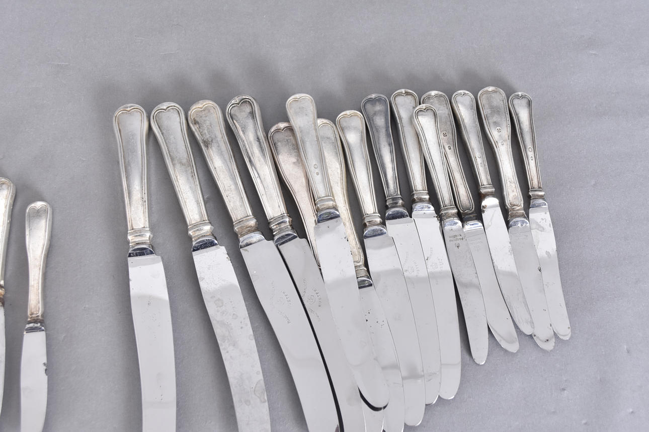 KNIVES, 19 pcs, silver, Old Danish pattern, 20th century.