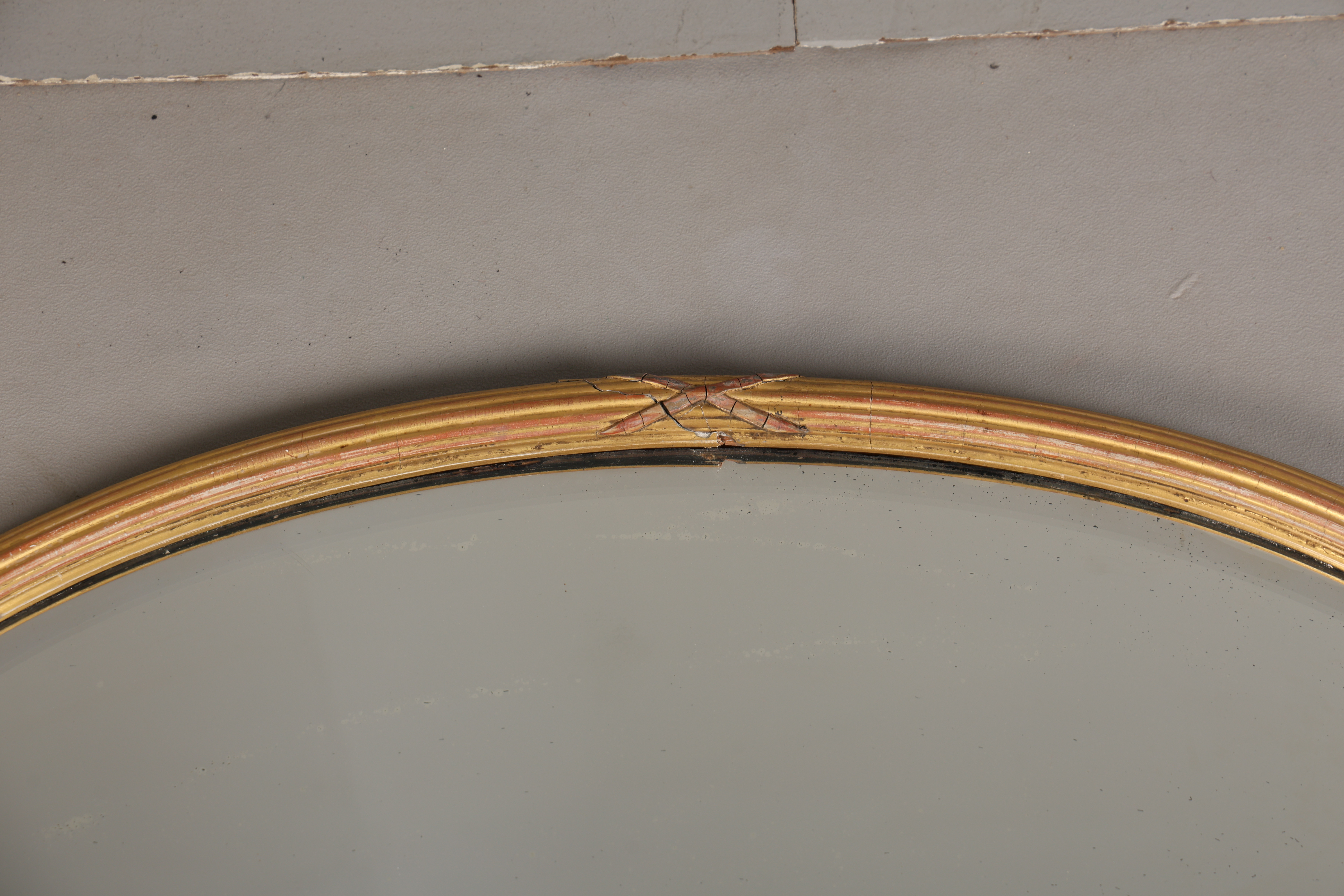 5039131. A GILT-FRAMED OVAL WALL MIRROR.