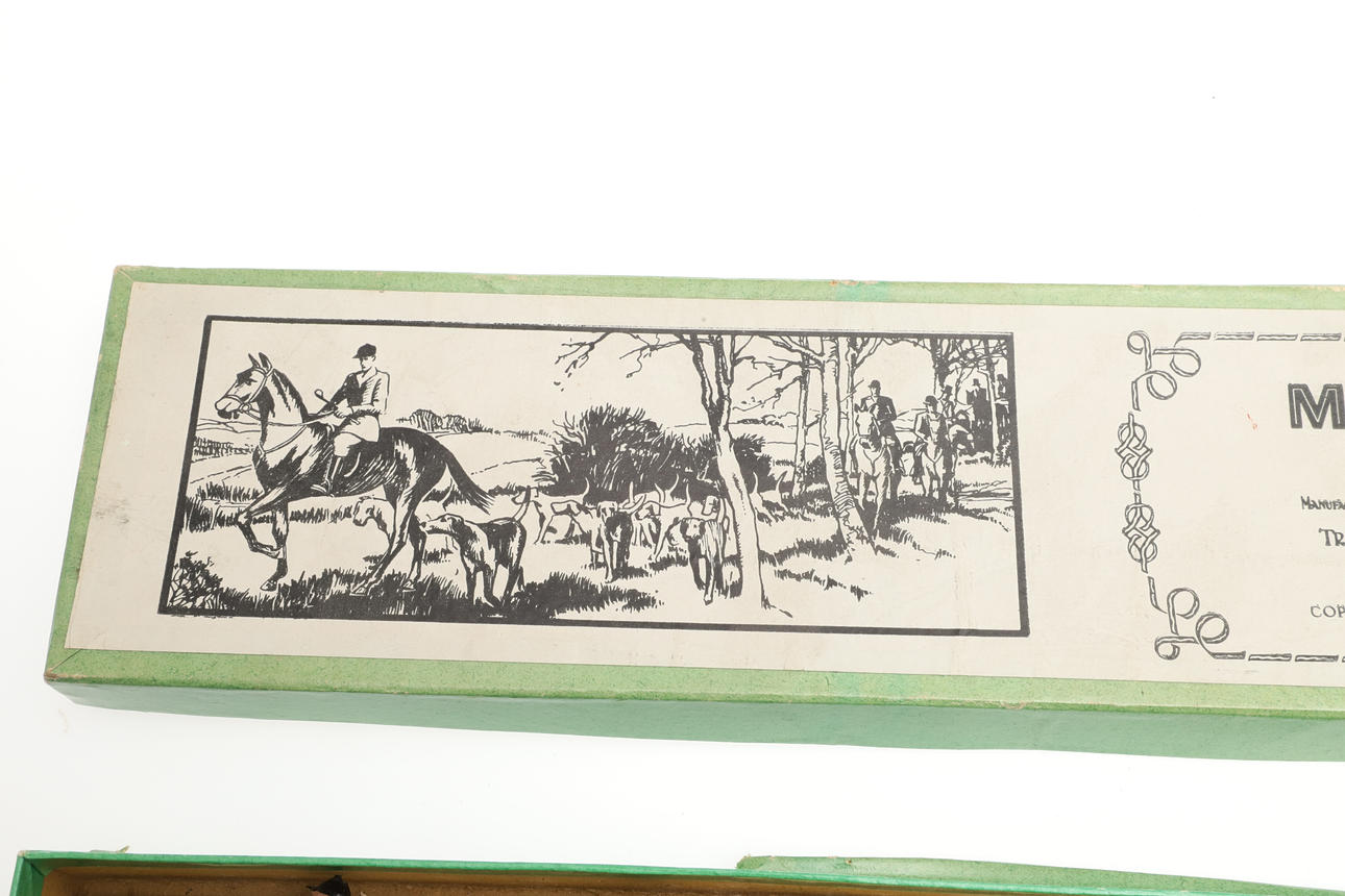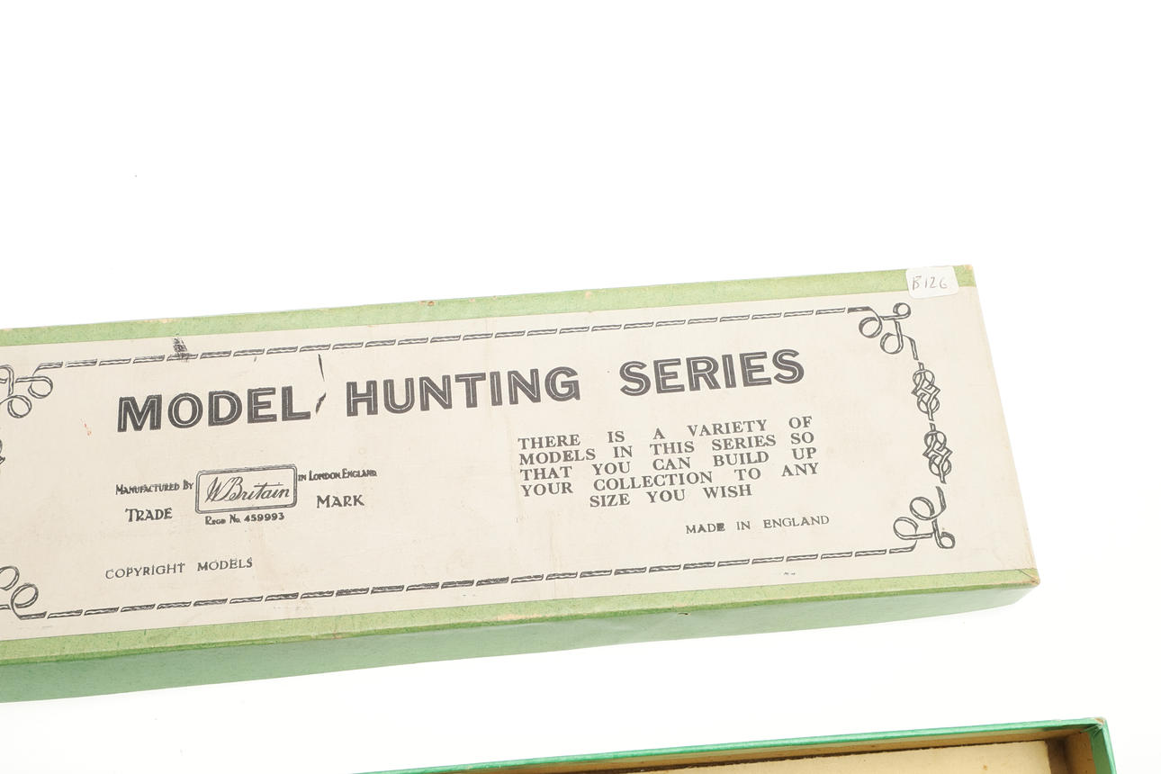 Model No 1446, including 2 figures on horseback, 4 figures, and 8 hounds. In it's box. Box 46cms by 9cms.