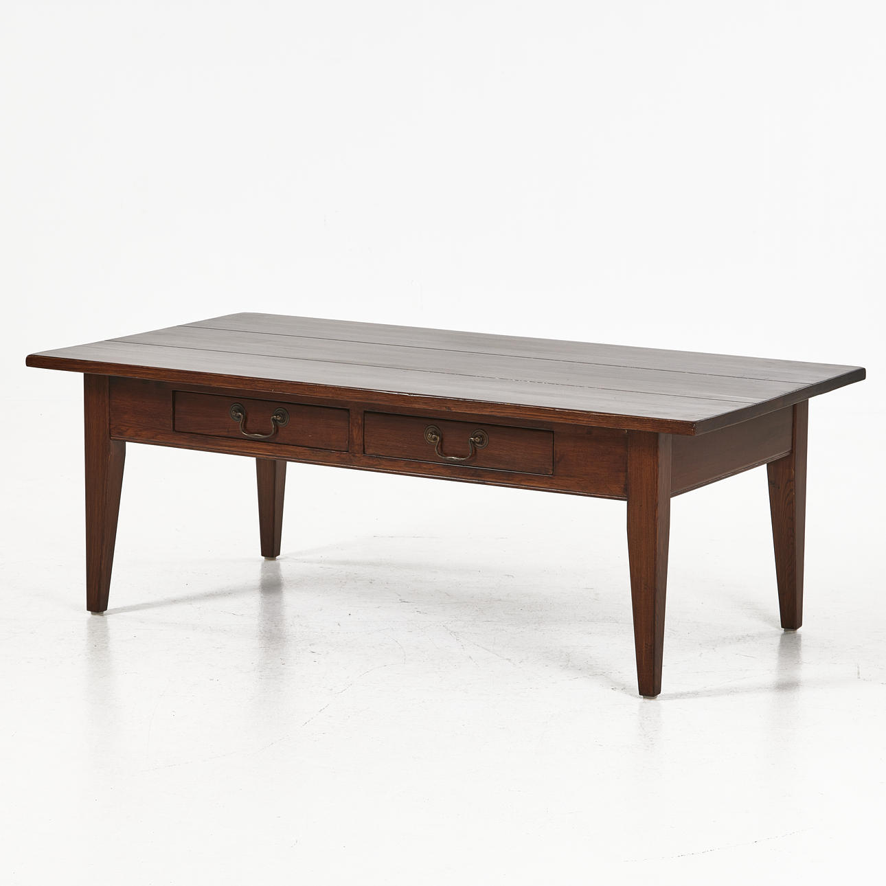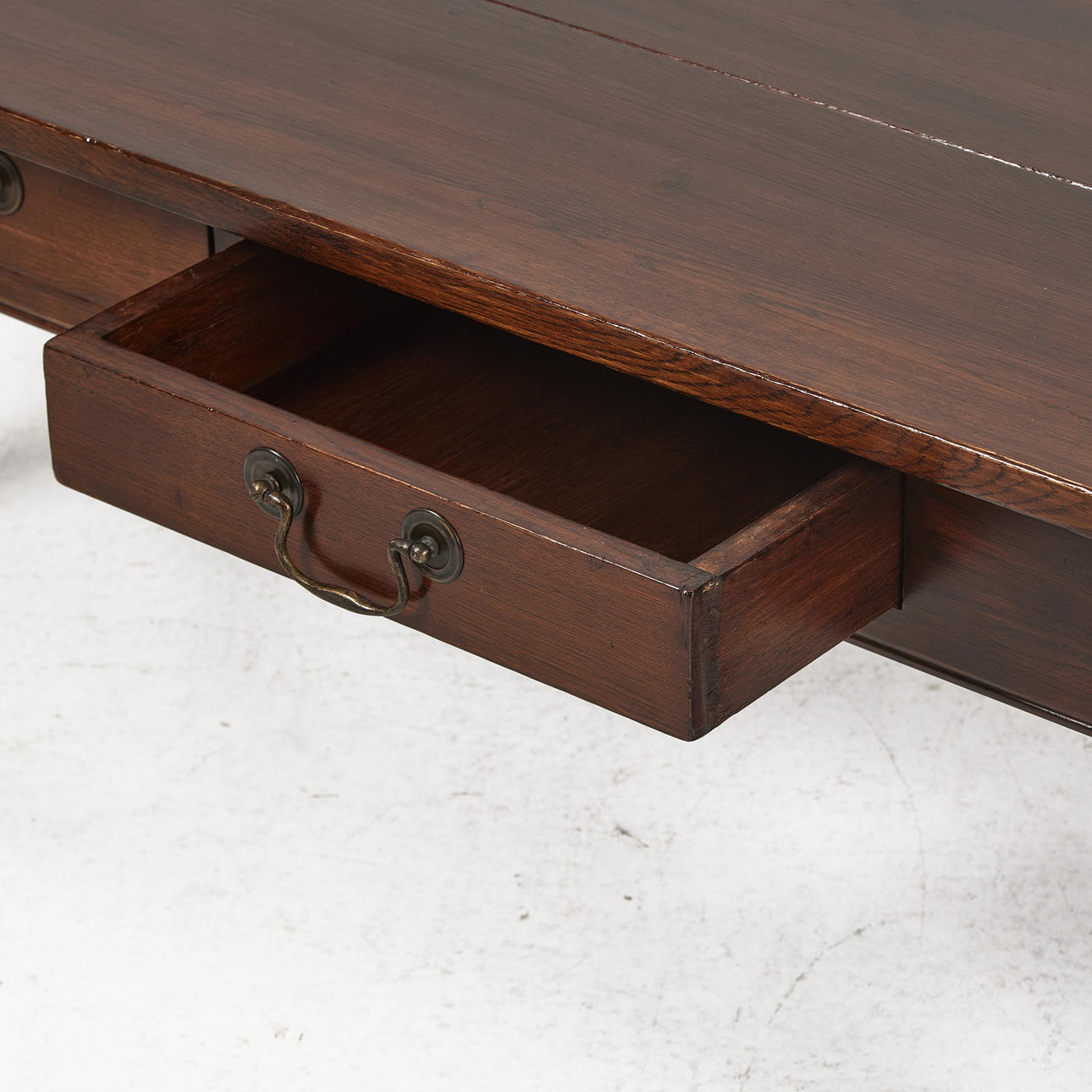 2 through drawers in the apron, brass handles, height 51, 140x74 cm.