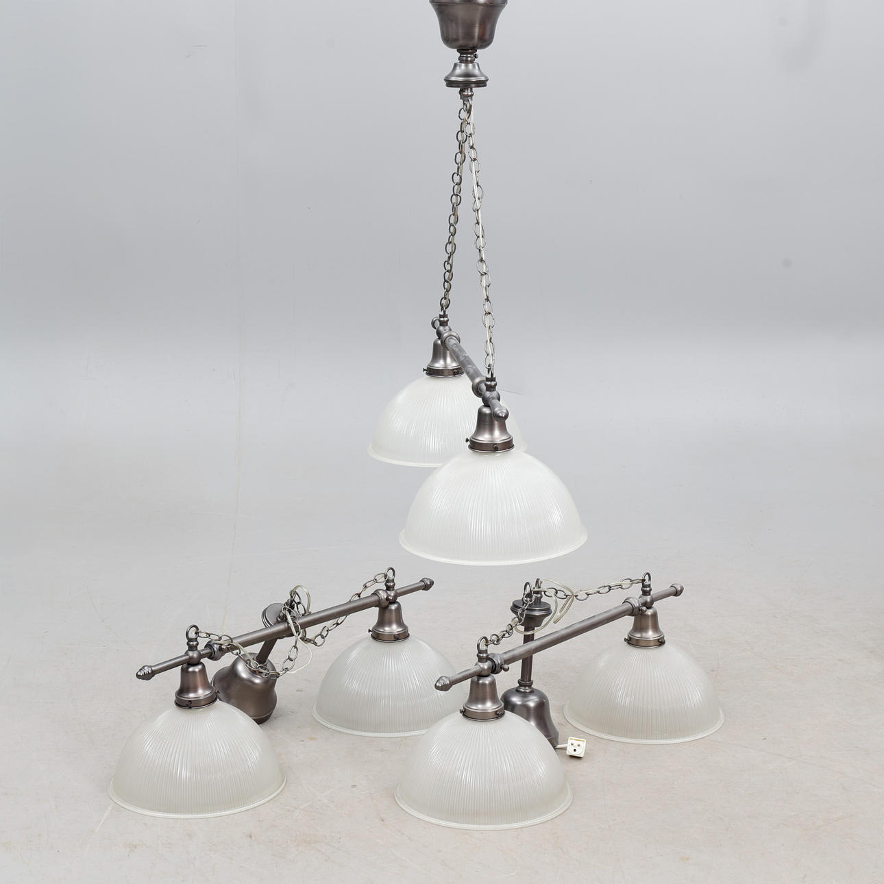 Three light fixtures with two lamps each, adjustable in length