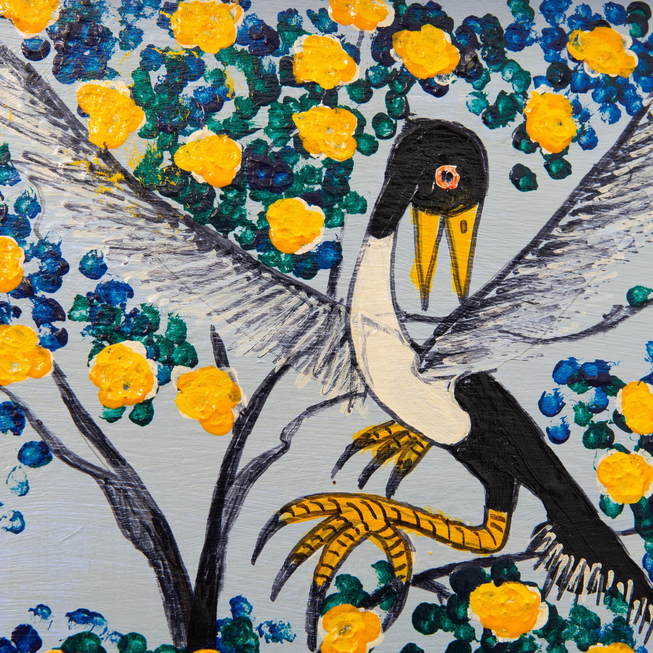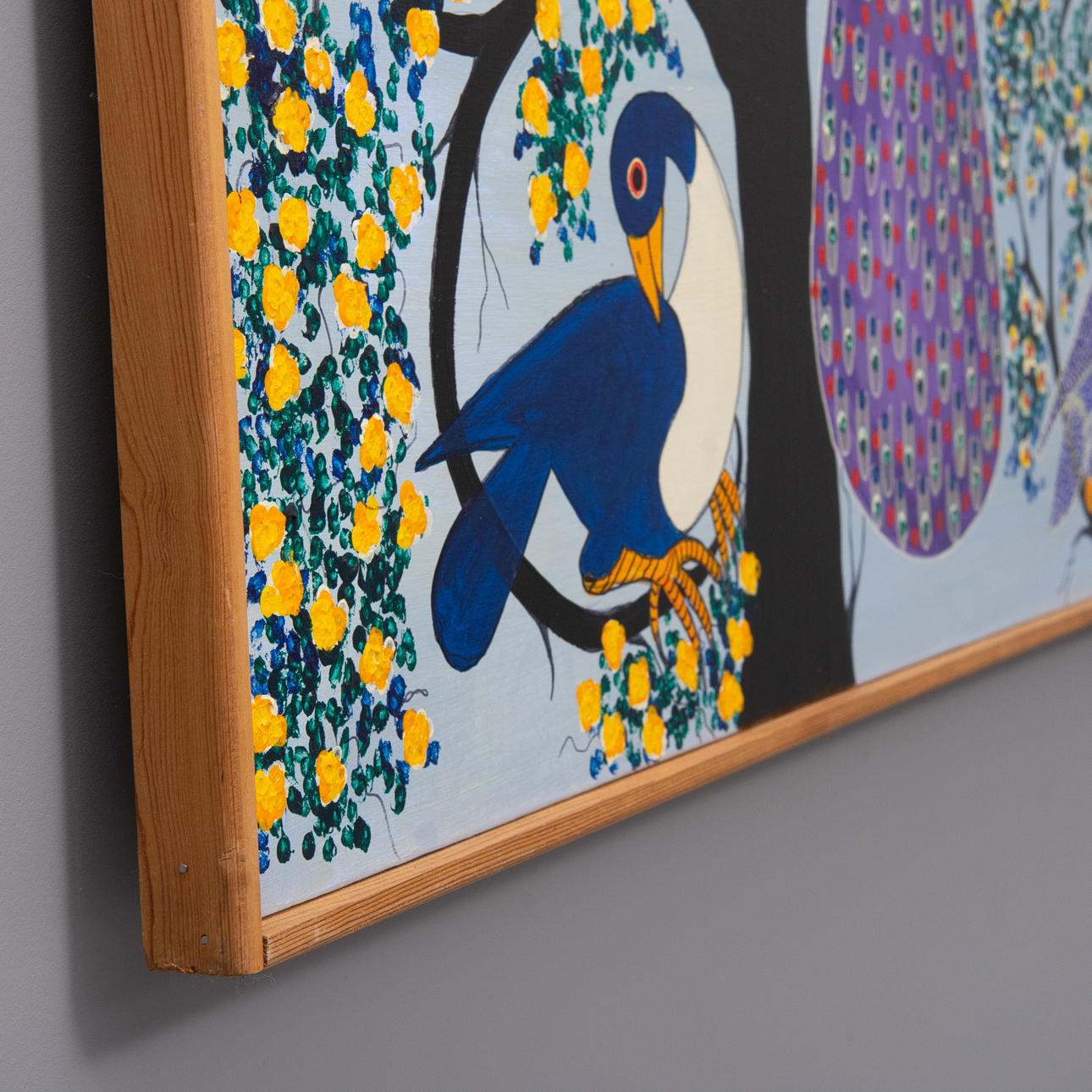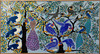 Oil on canvas. Birds in trees. Framed.