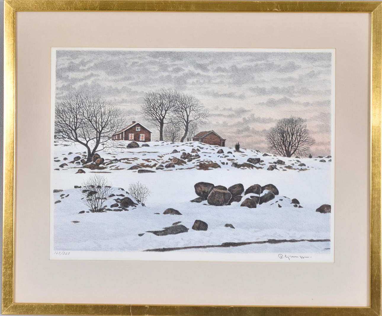 Winter motif from Trosa, signed 25.5x35 cm, signed and numbered 163/360, total dimensions 40x48 cm.