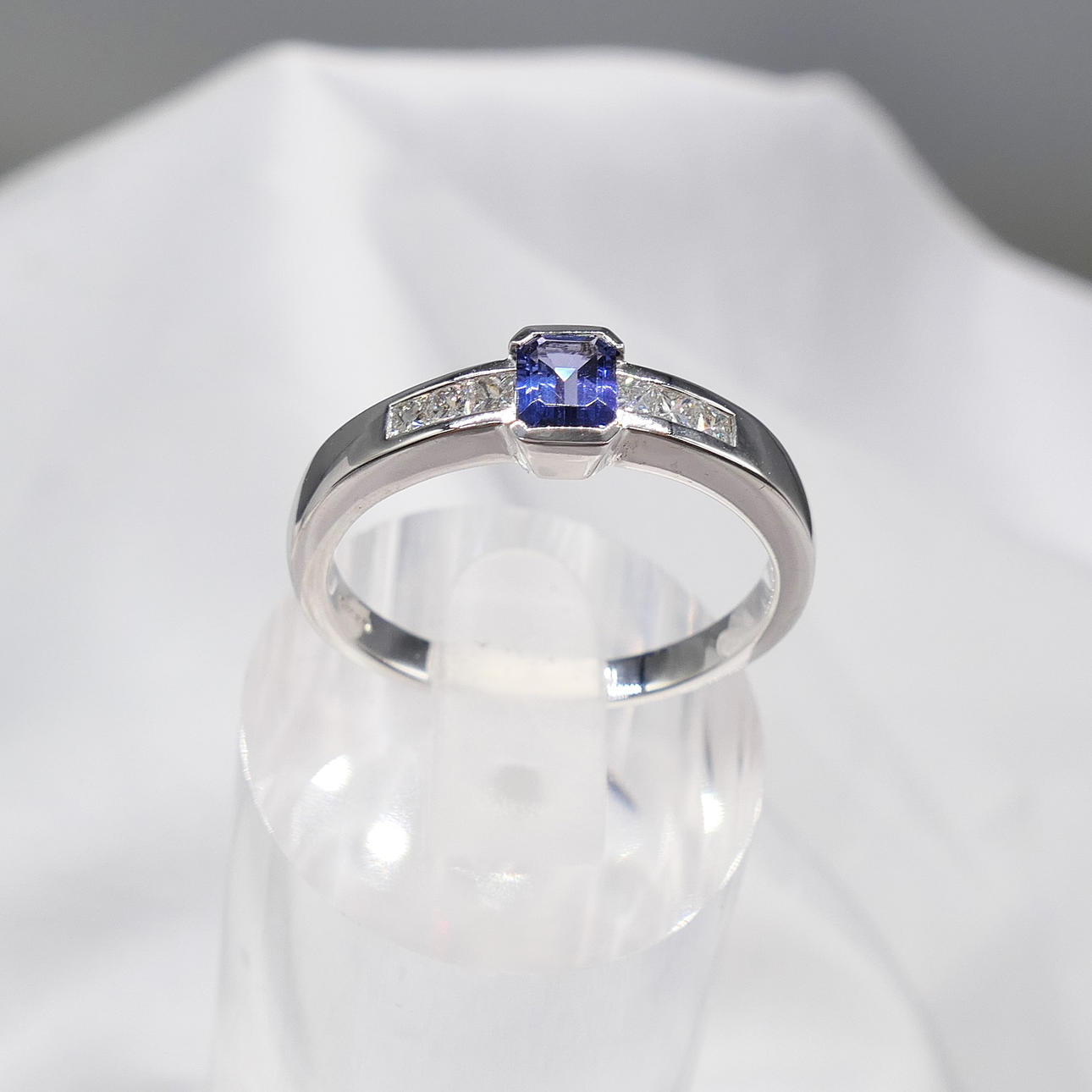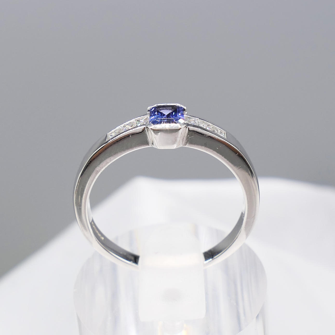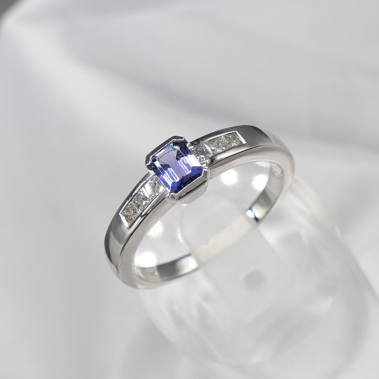 An 18k white gold dress ring set with tanzanite and diamonds, with gifting box
