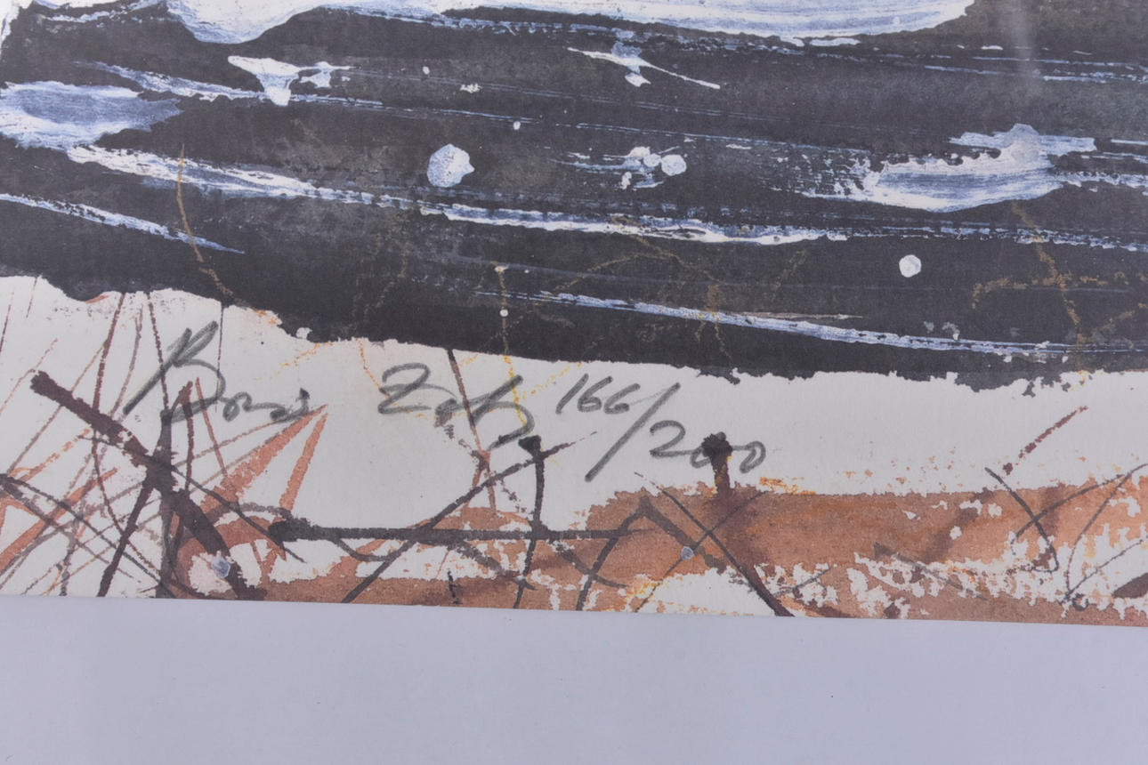 Inland lake landscape with pulled-up rowing boats. Signed and numbered 166/200 copies. 39x61 cm