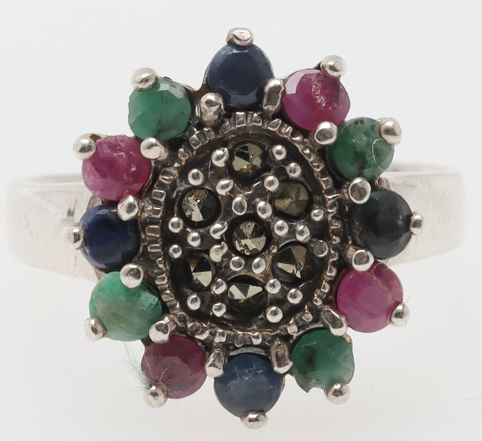 5040475. RING, sterling silver with gemstones.