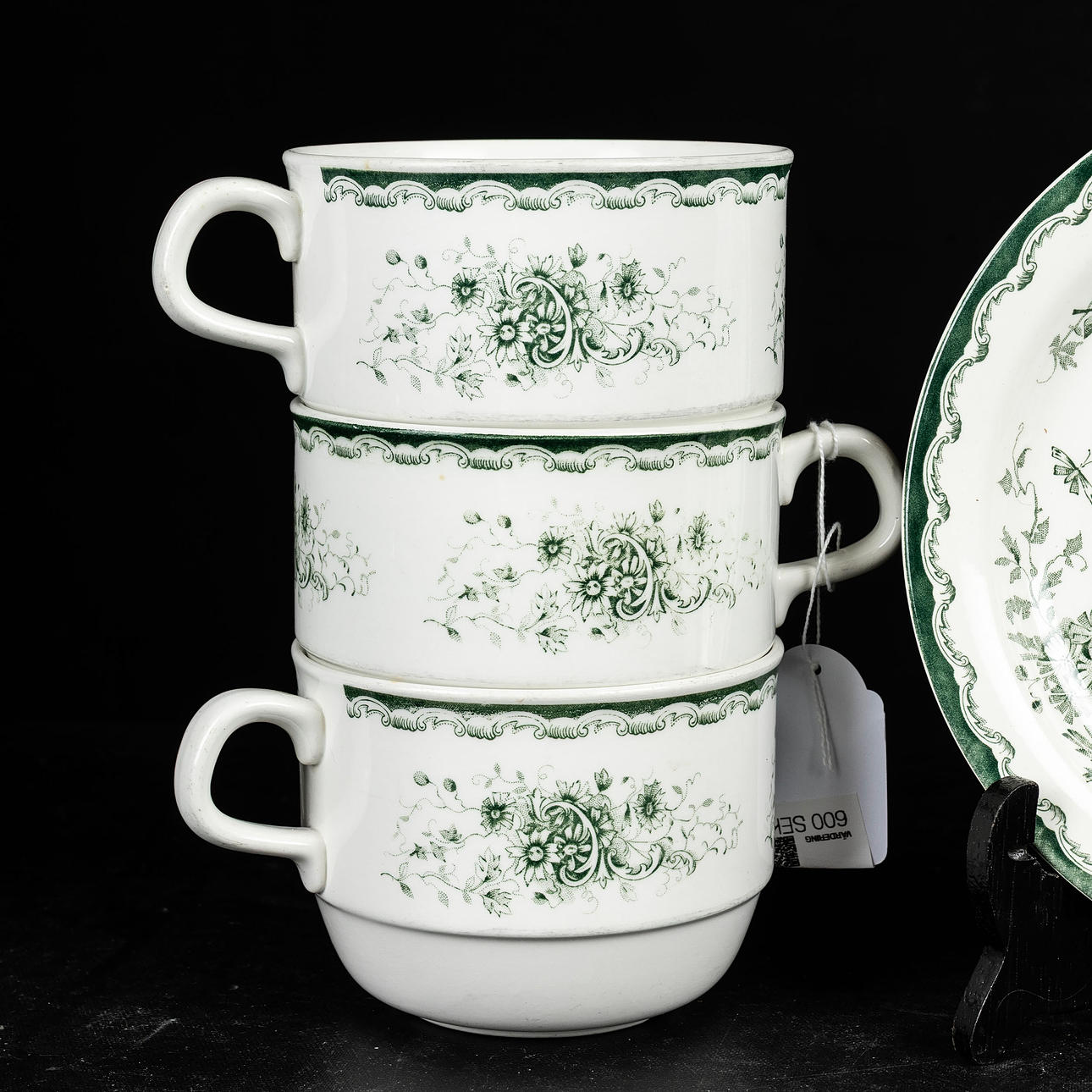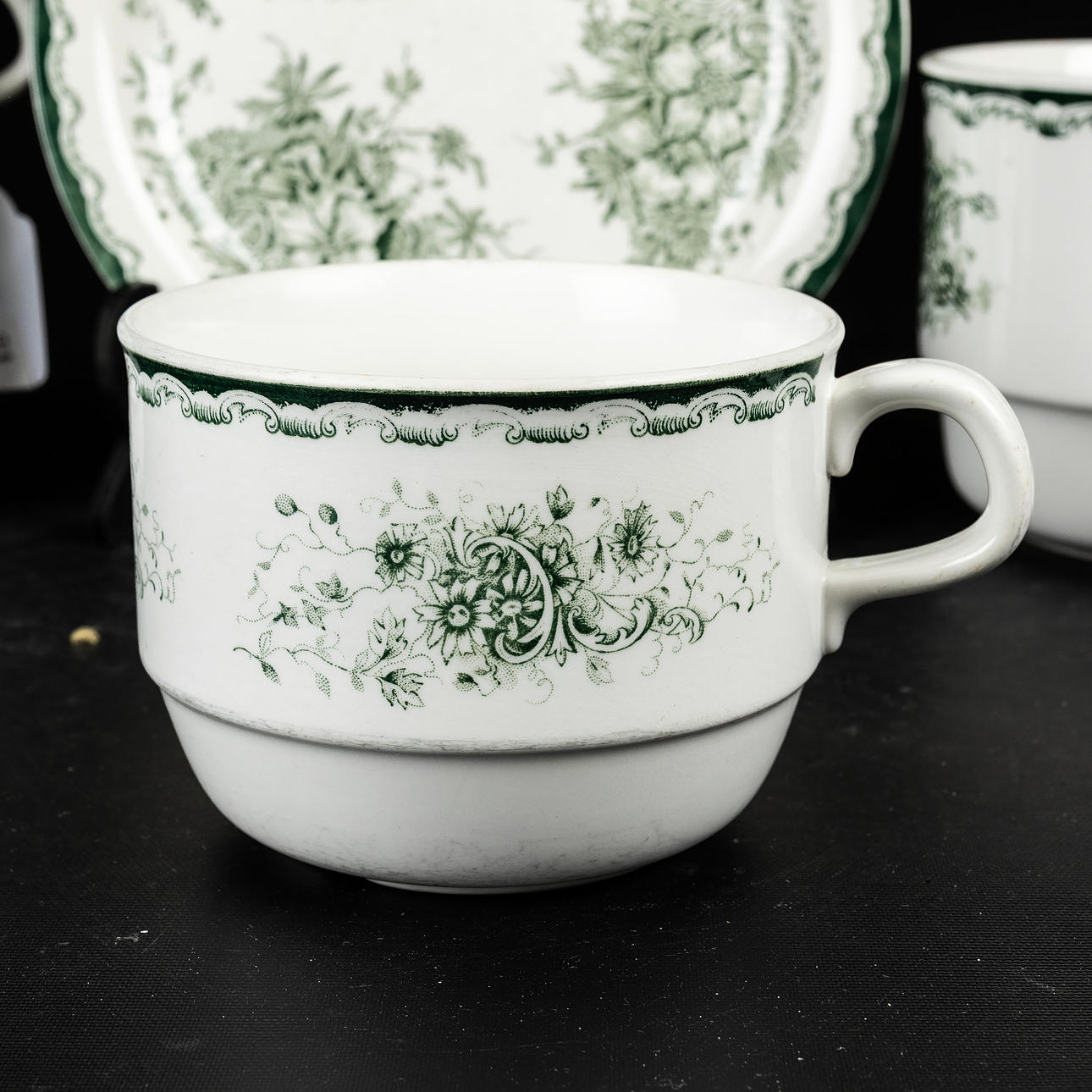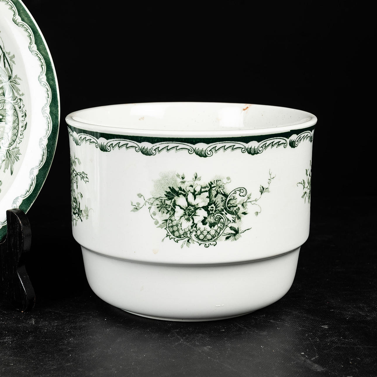 3 large cups, height approx. 9 cm, dia. approx. 11.5 cm. 1 cachepot 1 side plate / saucer.