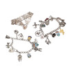 Two silver bracelets with attached charms mainly silver, together with a silver gate bracelet with padlock clasp, total gross weight 106g.