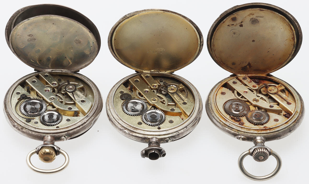 5041331. POCKET WATCHES, 3 pcs, silver.