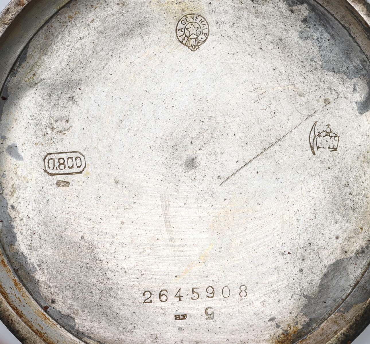 One watch with double case in 0.800 silver, others with outer case in 0.800 silver.