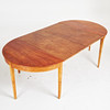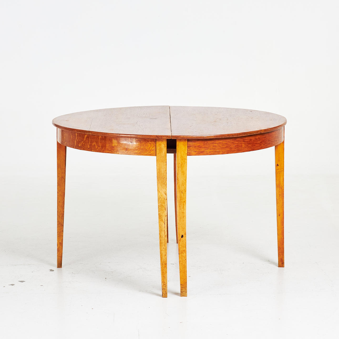 Diameter approx. 118.5 cm, height approx. 76 cm, two extension leaves of 60 cm each.