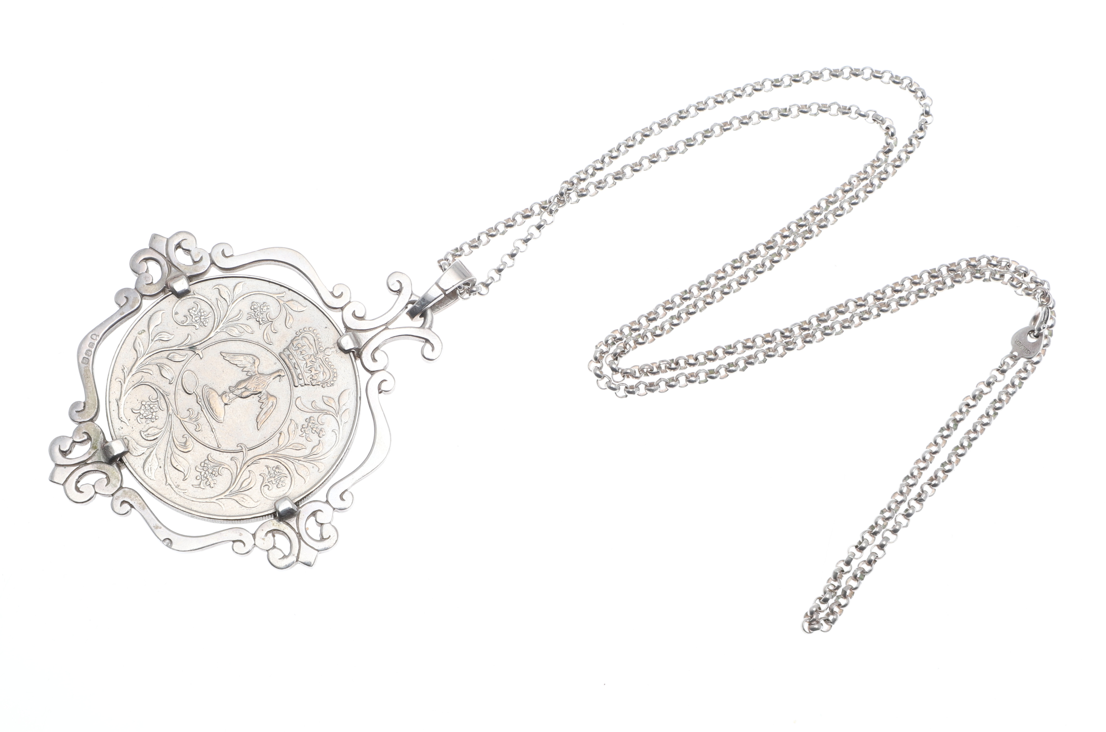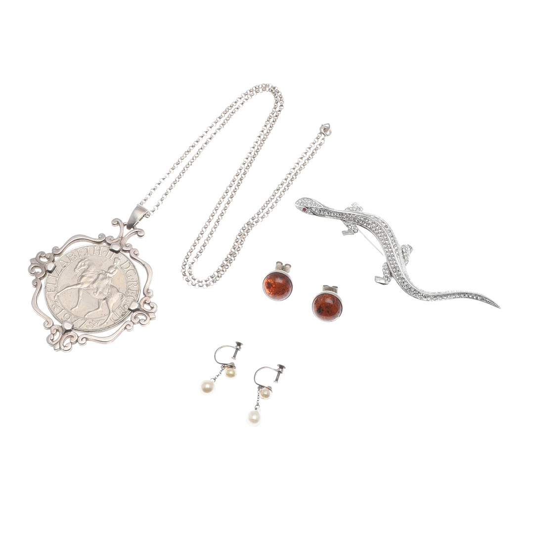 5041658. A SILVER MOUNTED CROWN PENDANT ETC.