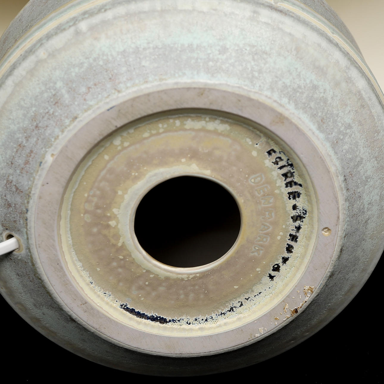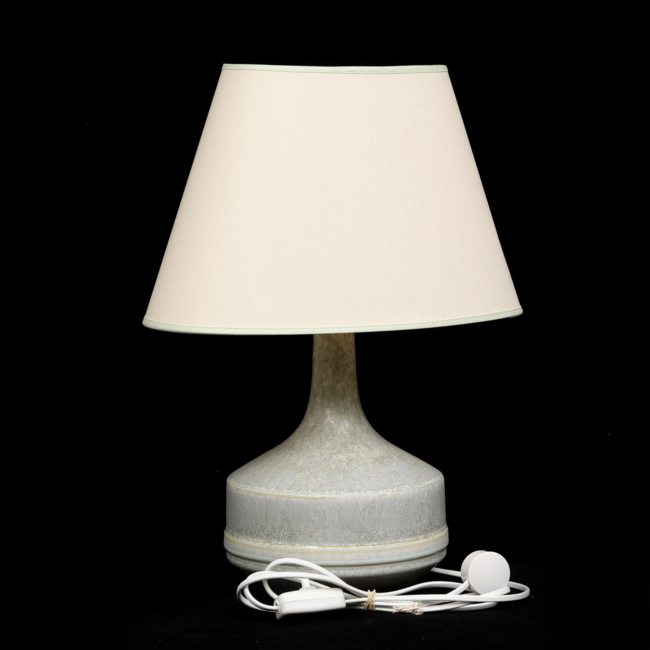 Grey glazed stoneware, height 24 cm, height including shade 45 cm. Shade width 36 cm.